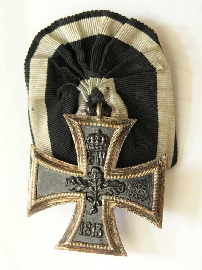 Cruce cu braţele egale. Partea I - în centru litera W, pe braţe de sus - o coroană, pe braţe de jos - data 1914. Partea II - în centru - o creangă, pe braţe de sus - coroană şi litere EW; pe braţe de jos - data 1813.