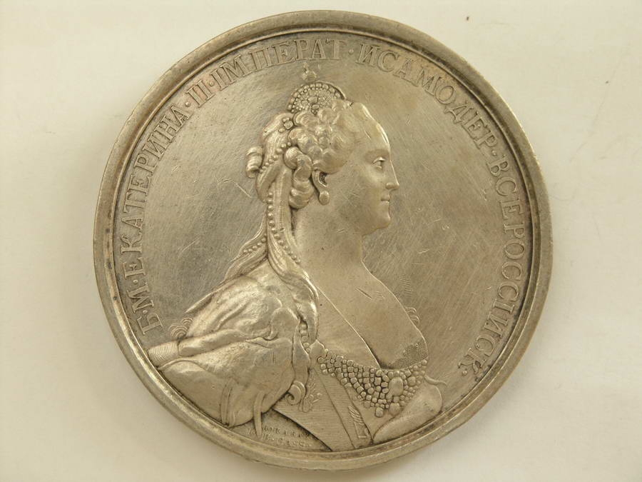Partea I - este reprezentată împărăteasa Ecaterina II, în profil, bust; marginile - cu inscripţii în limba rusă.