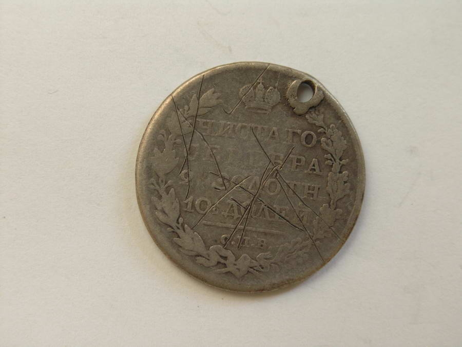 Partea I - text în 4 rânduri în limba rusă, înconjurată cu cunună. Partea II - este reprezentat un vultur cu 2 capete, cu coroană, sceptru şi simbolul puterii, pe margini - inscripţii în limba rusă.