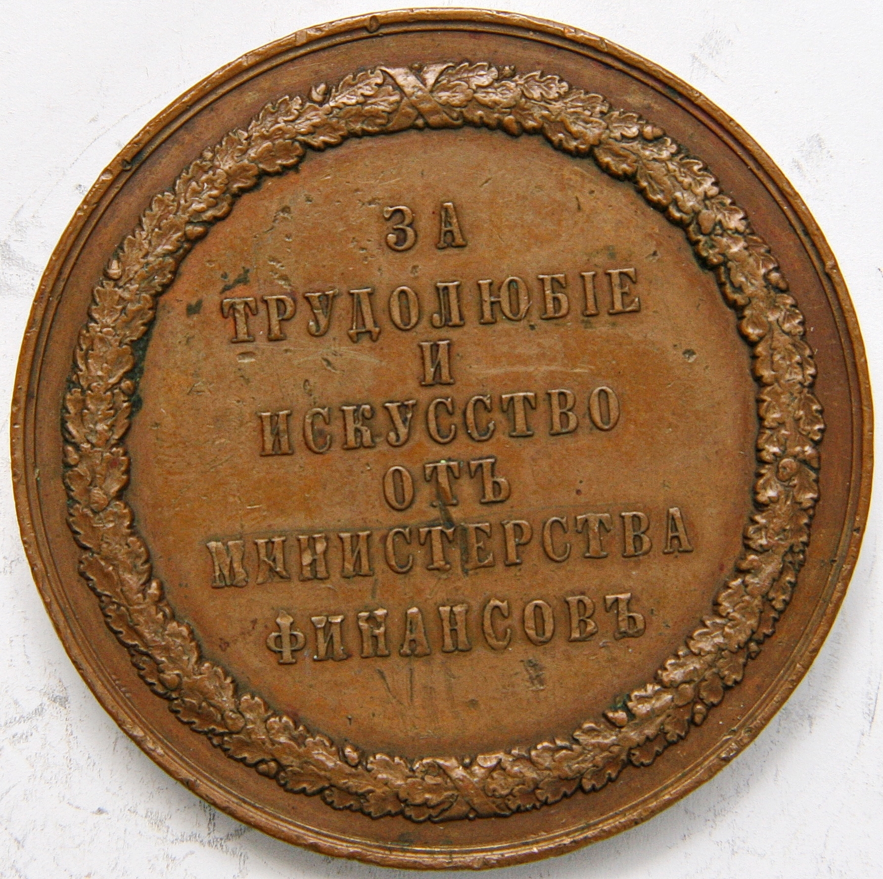 rotundă, cu muchie netedă. Avers: capul împăratului rus Nicolae II în profil stg, lateral - inscripții. Revers: legenda de 7 rînduri într-o cunună vegetală pe toată marginea.