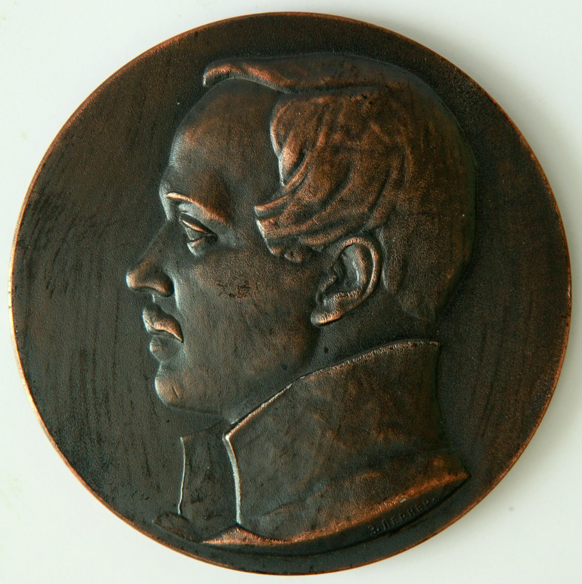 rotundă cu muchie netedă. Avers: efigia poetului rus Lermontov în profil stg; pe tăietura gîtului - numele meșterului medalier. Revers: citat și semnătura autorului dispuse în 4 rînduri.