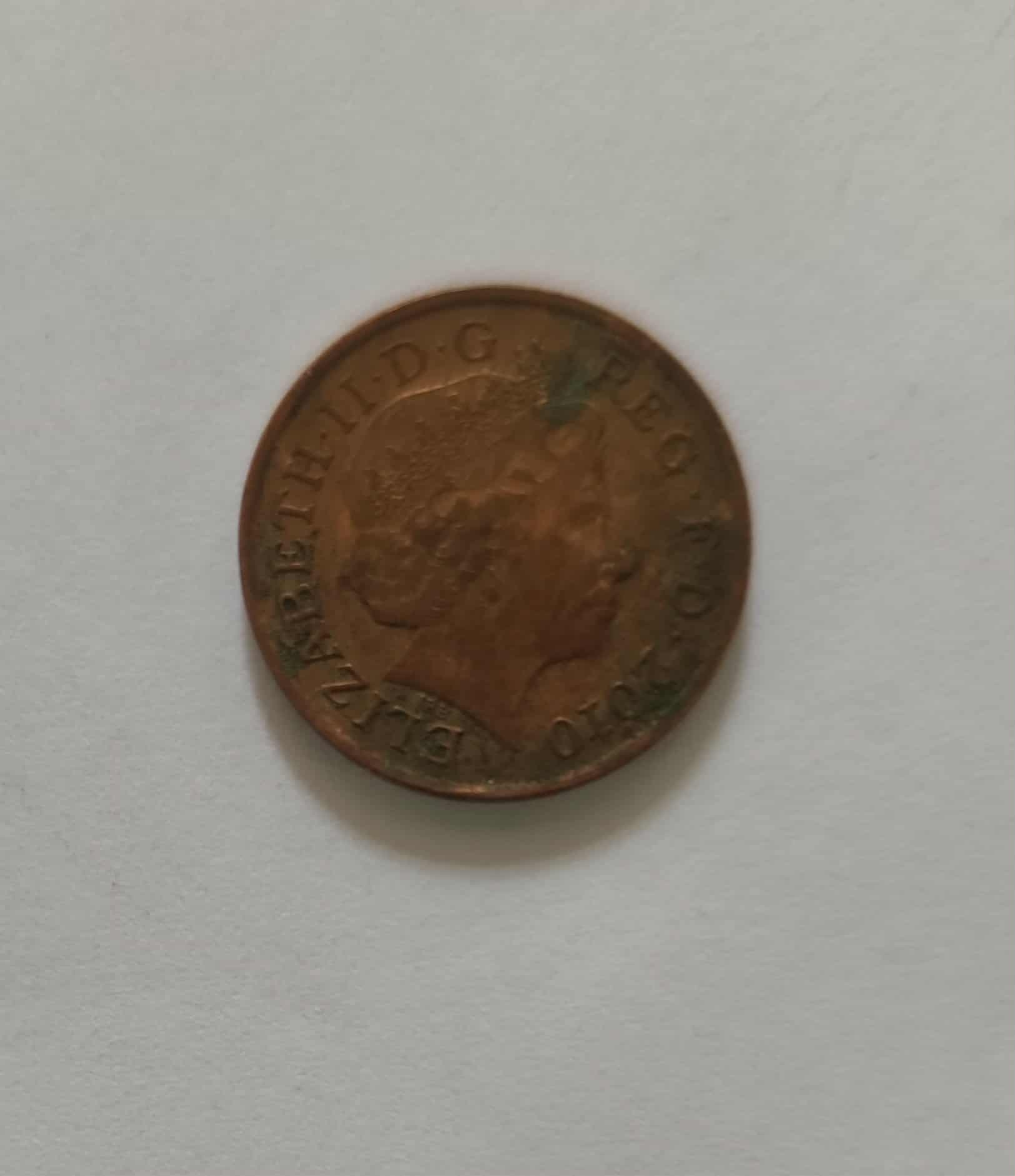 iar în jurul efigiei este inscripționat textul: "ELIZABETH · II · D · G · REG · F · D" (abreviere pentru Elisabeth II Dei Gratia Regina Fidei Defensatrix, adică Elisabeta a II-a, din grația lui Dumnezeu Regină, Apărătoare a Credinței). Anul emiterii vizibil sub portret, lângă marginea de jos, este "2010".