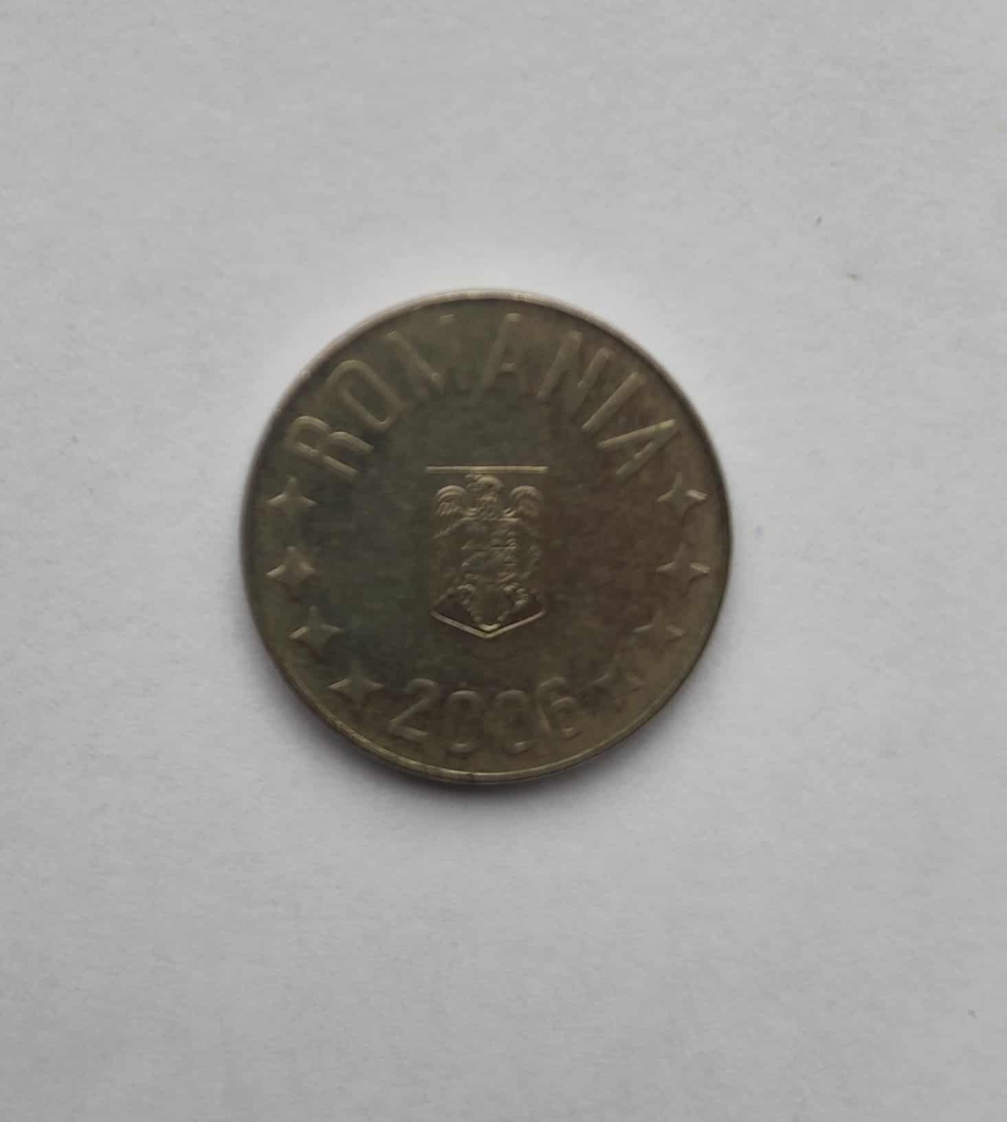 Moneda de formă circulară cu muchia netedă și valoarea nominală de 10 bani din România. Reversul monedei are pe circumferința superioară inscripționat cu majuscule numele țării emitente: ROMANIA. În centru se află Stema României, reprezentând acvila (vulturul) cruciată, având în cioc o cruce și ținând în gheare un sceptru și o spadă. Sub stemă este marcat anul emiterii monedei: 2006. Circumferențial în jurul stemei și a anului sunt distribuite un număr de 12 stele, simbolizând Uniunea Europeană și aspirațiile europene ale României. Pe aversul monedei valoarea nominală în partea superioară este inscripționată cu cifra mare 10.
