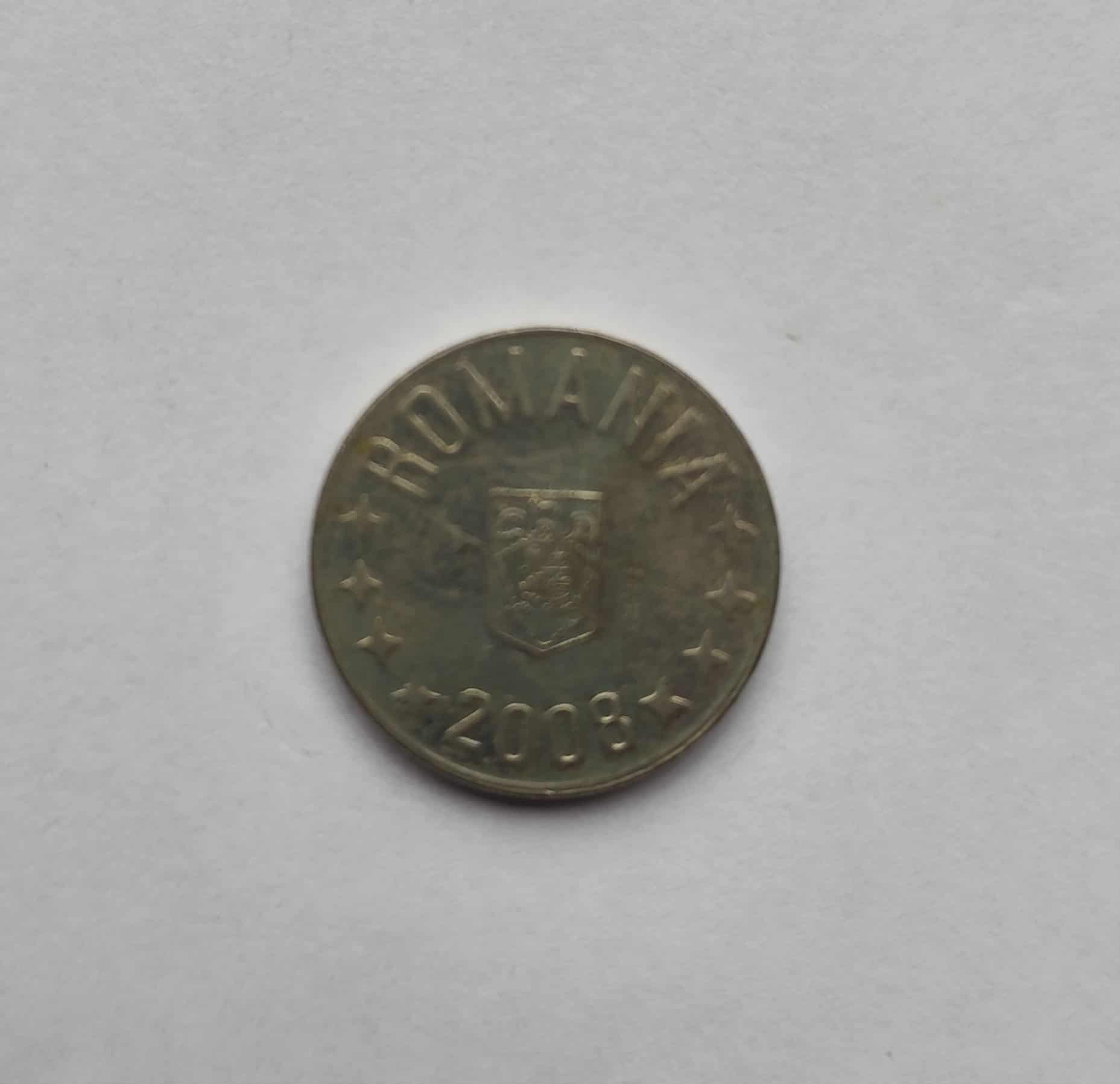Moneda de formă circulară cu muchia netedă și valoarea nominală de 10 bani din România. Reversul monedei are pe circumferința superioară inscripționat cu majuscule numele țării emitente: ROMANIA. În centru se află Stema României, reprezentând acvila (vulturul) cruciată, având în cioc o cruce și ținând în gheare un sceptru și o spadă. Sub stemă este marcat anul emiterii monedei: 2008. Circumferențial în jurul stemei și a anului sunt distribuite un număr de 12 stele, simbolizând Uniunea Europeană și aspirațiile europene ale României. Pe aversul monedei valoarea nominală în partea superioară este inscripționată cu cifra mare 10.