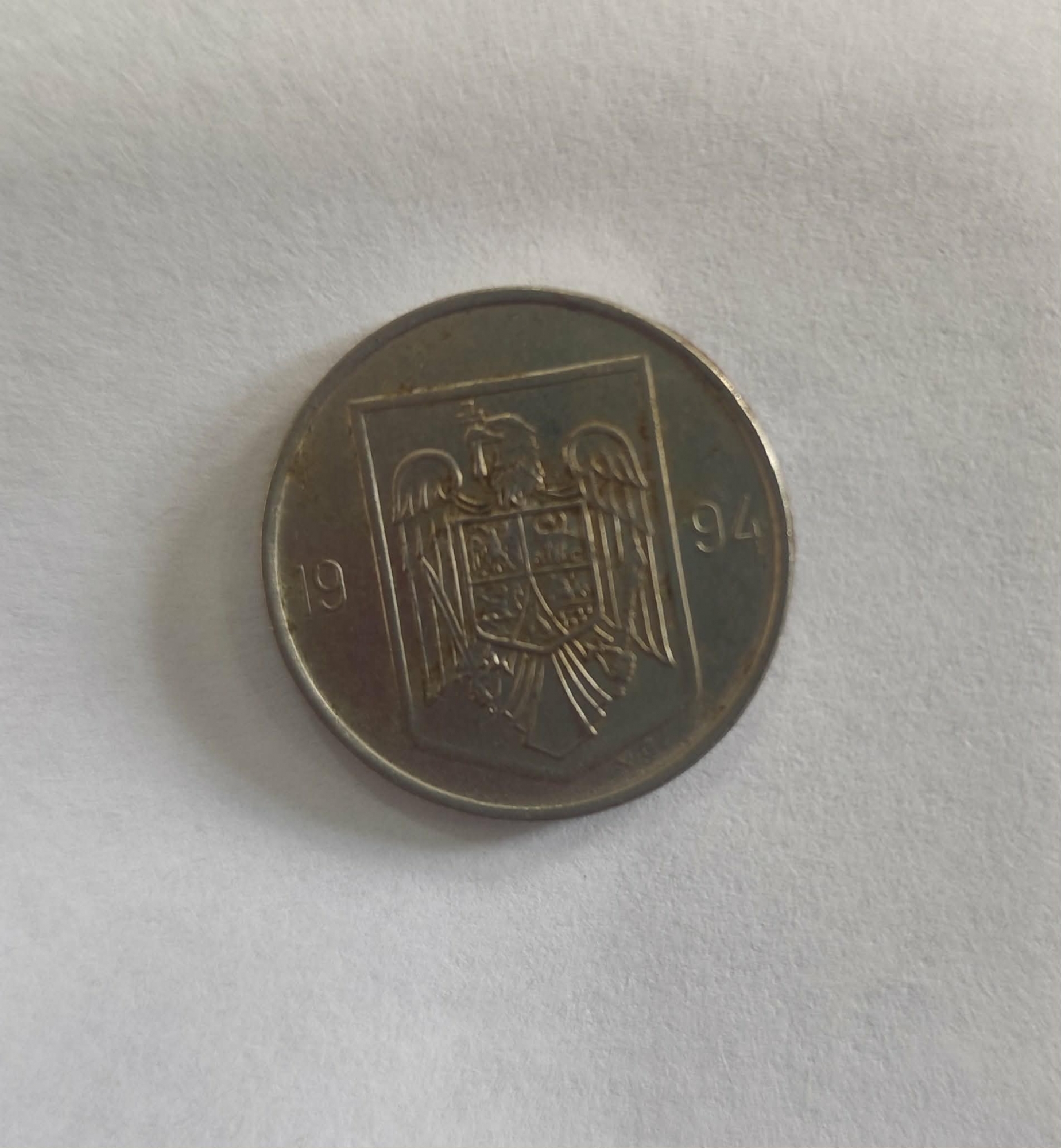 Monedă de formă circulară care pe revers, pe partea centrală a monedei se află stema României, un scut cu o acvilă cruciată, care ține în cioc o cruce, în gheare un sceptru și o spadă. Sub stema, literele "VG" indică numele gravorului, Vasile Gabor. ​Anul emiterii 1994 este împărțit de stemă, cu "19" în partea stângă și "94" în partea dreaptă.​Pe avers cifra mare "10" se află în centrul monedei, deasupra inscripției "LEI". Deasupra valorii, în partea superioară a cercului, este scris "ROMANIA". Pe fiecare parte a cifrelor, în partea de jos, se află două ramuri de laur, care se unesc sub inscripția "LEI".