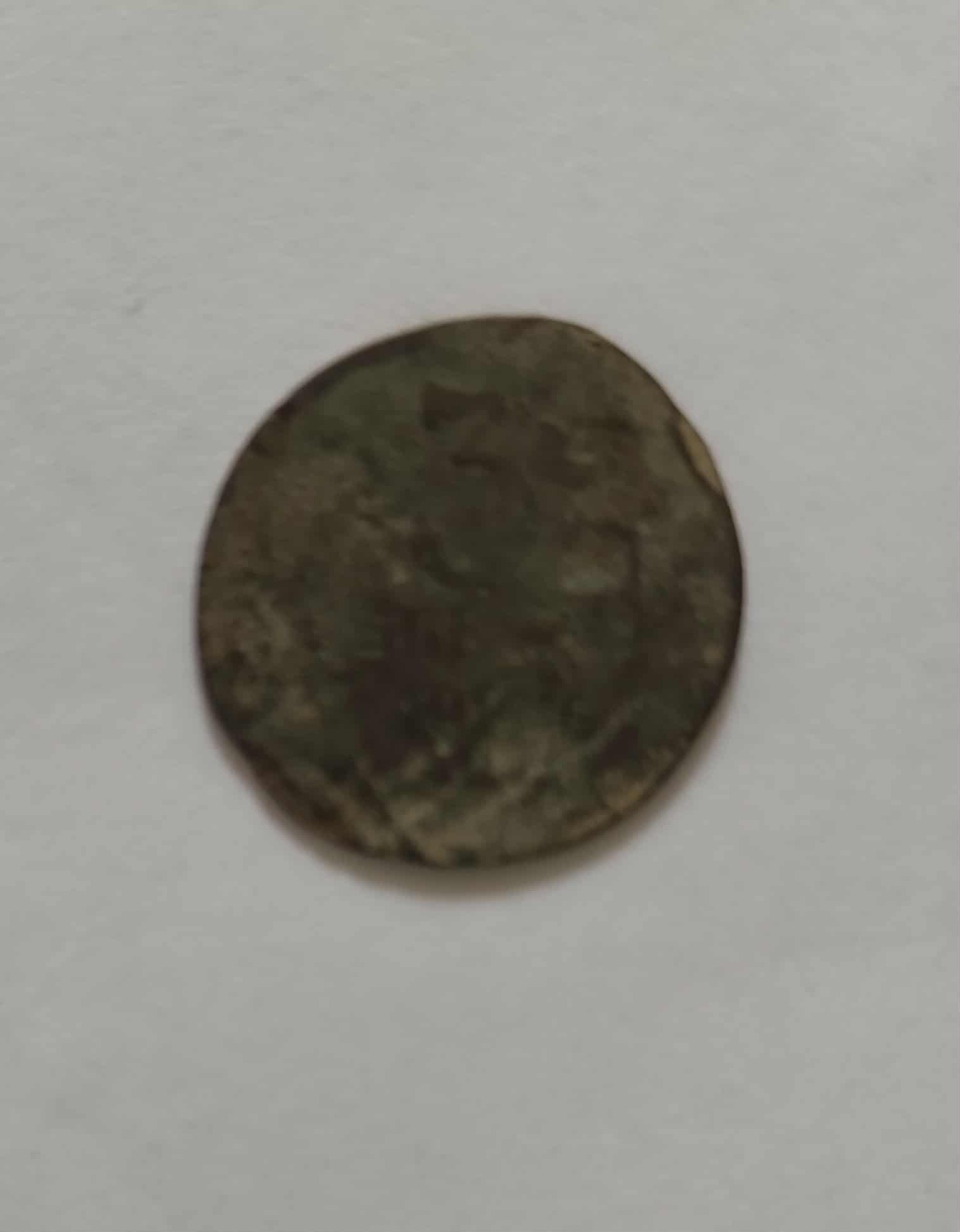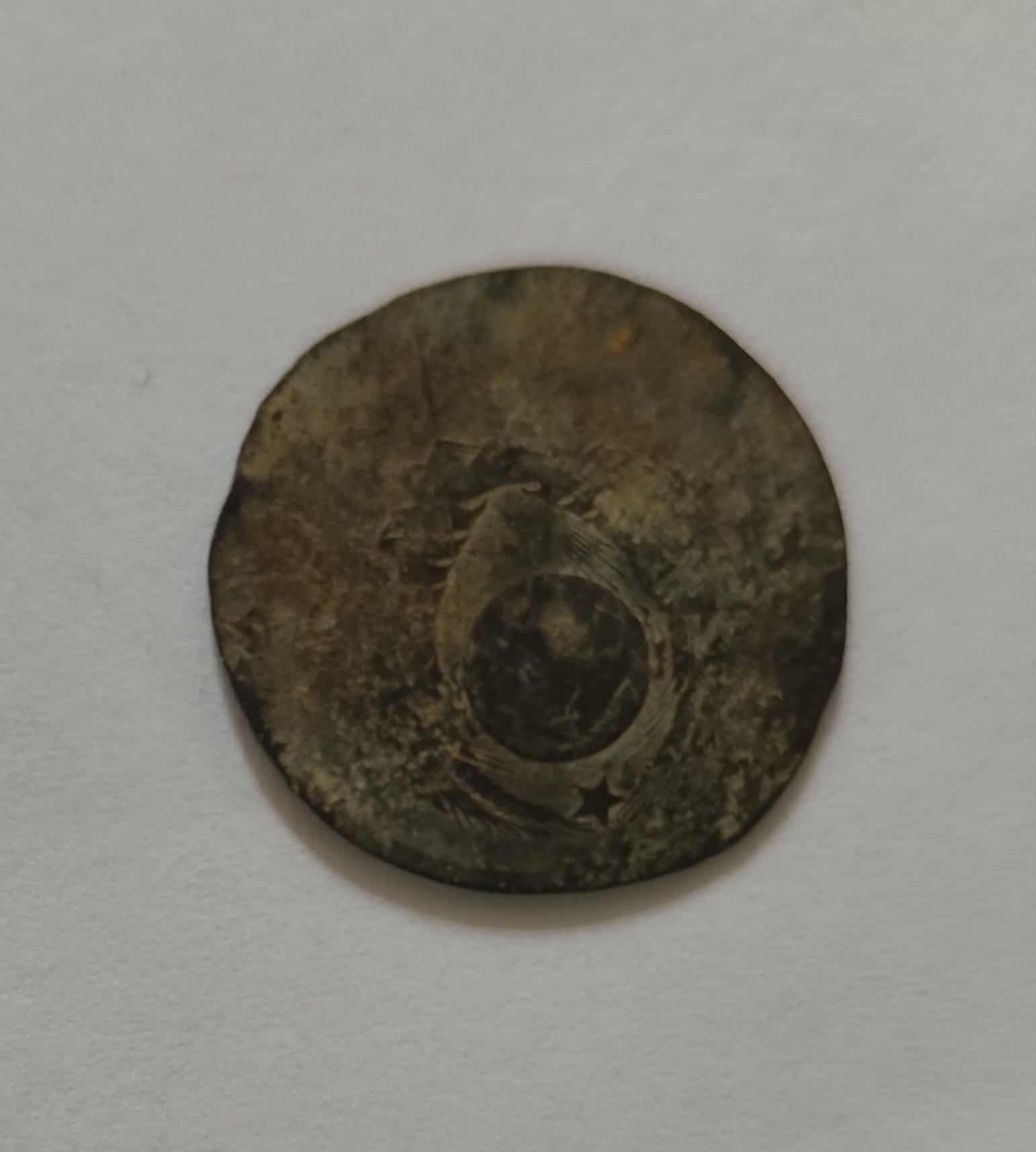 Moneda de formă circulară, de culoarea arămie/roșiatică cu muchia zimțată și ​valoarea nominală de 3 copeici din perioada URSS .pe reversul mopnedei este stema URSS, elementul central, deși puternic șters și corodat, ce include secera și ciocanul suprapuse (simbolizând alianța dintre muncitori și țărani), așezate pe un glob pământesc și flancate de snopi de grâu. ​În jurul snopilor era înscris motto-ul statului: "Proletari din toate țările, uniți-vă!" în limbile diferitelor republici unionale (această inscripție este complet ilizibilă din cauza uzurii). Deasupra stemei, în vârf, se află o stea în cinci colțuri, care este parțial vizibilă. ​În partea de jos, sub snopii de grâu, se distinge o stea mai mică, cu cinci colțuri, un detaliu caracteristic stemei de pe monedele sovietice timpurii. Pe aversul monedei, care este și mai afectat de uzură și oxidare, fiind aproape complet neted și ilizibil, se obervă valoarea nominală 3 КОПЕЙКИ înconjurat de ornamente , de spice de grâu. ​