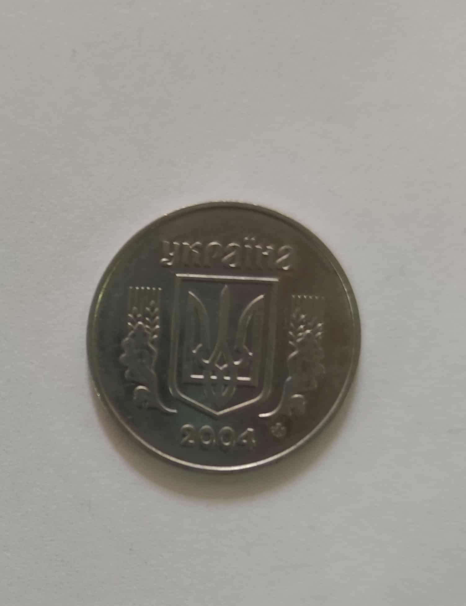 Moneda de formă circulară cu muchia netedă și valoarea nominală de 5 copeici din Ucraina. Aversul monedei indică valoarea nominală, cifra mare "5" este plasată central. Sub cifră, este inscripționat cuvântul "КОПIЙОК" (Kopiyok), care înseamnă "copeici" în limba ucraineană. Există o bordură exterioară decorată cu un model de viță-de-vie și struguri. ​Reversul monedei prezintă Stema Ucrainei (Tridentul), încadrată într-un scut. Deasupra stemei, este inscripționat cuvântul "УКРАЇНА" (Ukraina), care înseamnă "Ucraina".Sub stemă, este anul "2004", anul emiterii. De o parte și de alta a scutului, sunt reprezentate două spice de grâu, simbolizând agricultura și prosperitatea.