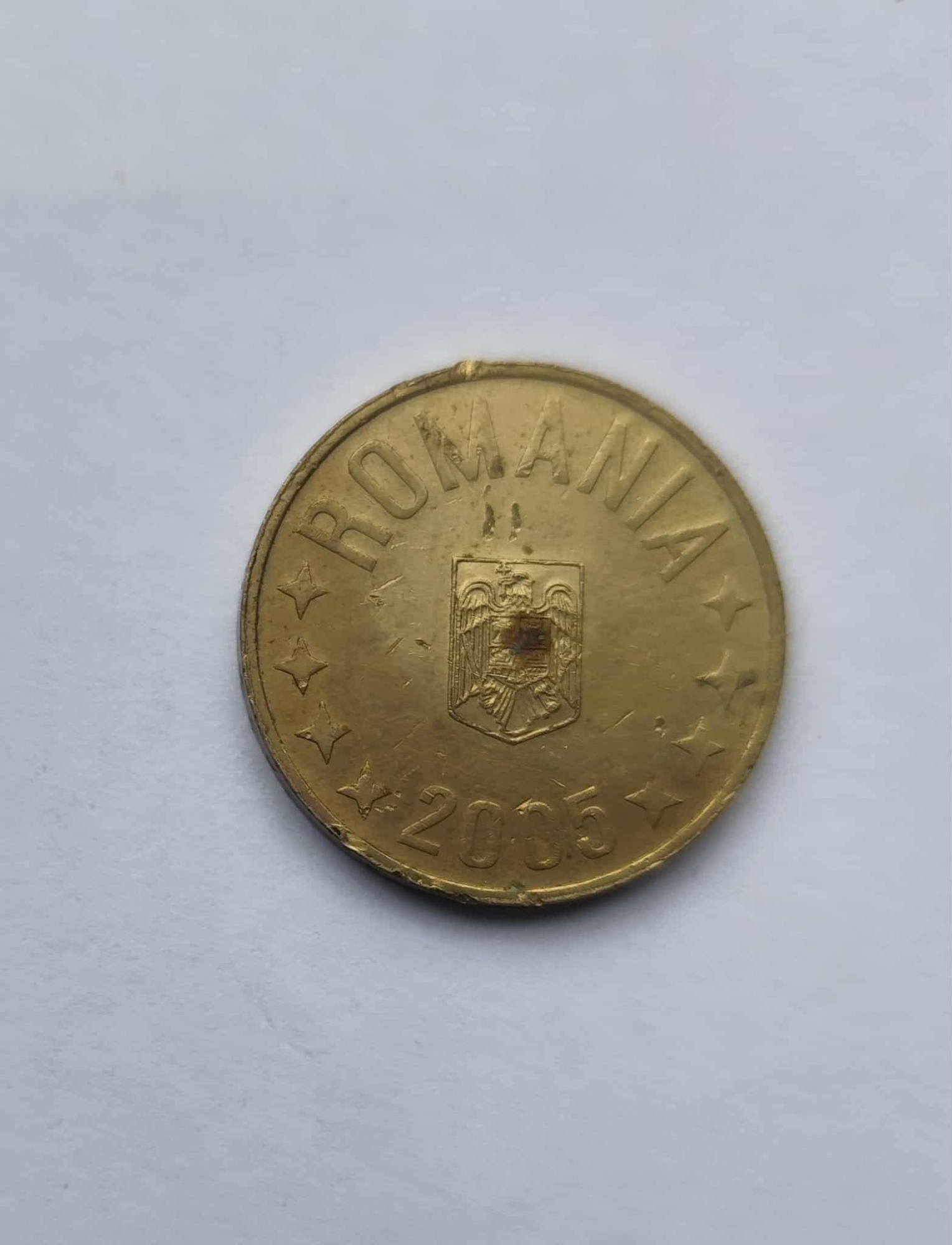 Moneda de formă circulară, de culoarea galben-aurie cu muchia zimțată și valoarea nominală de 50 bani din România. Avers monedei prezintă valoarea nominală mare și centrală: "50". ​Sub valoarea nominală scrie "BANI" cu majuscule, aliniat orizontal. ​Moneda are o culoare galben-aurie, datorită materialului din care este realizată. Pe reversul monedei, în partea de sus, în arc de cerc, este inscripționat numele țării emitente: "ROMANIA". ​În centru se află Stema României, iar în partea de jos este vizibil anul emisiunii: "2005". Pe circumferința interioară a monedei, între textul superior și anul, sunt plasate opt stele (patru pe stânga și patru pe dreapta), simbolizând integrarea europeană.