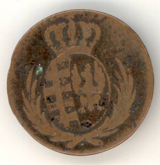 rotundă cu muchie netedă. Avers: un scut ovoidal între 2 crenguțe de palmier surmontat de o coroana imperială. Revers: valoarea nominală, anul emiterii și 2 inițiale în 4 rînduri.