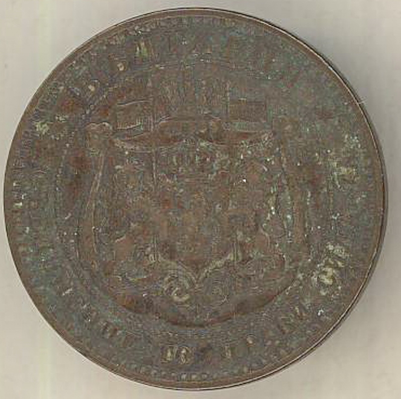 rotundă cu muchie netedă şi cerc perlat. Avers: între 2 crenguţe legate jos cu panglici e valoarea nominală şi anul emiterii, dispuse în 3 rînduri. Revers: stema Bulgariei conturată marginal de inscripţii.