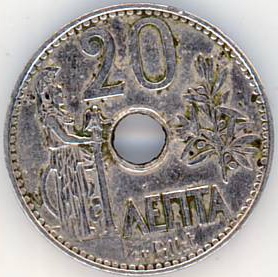 Avers: la stg e zeița Atena, la drp e o crenguță de măslin; sus - valoarea nominală în cifre, jos - în litere; numele meșterului mealier.