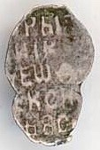 ovoidală cu muchie netedă. Avers: ecvestru (partea inferioară) în chenar punctat. Revers: legenda în 5 rînduri.