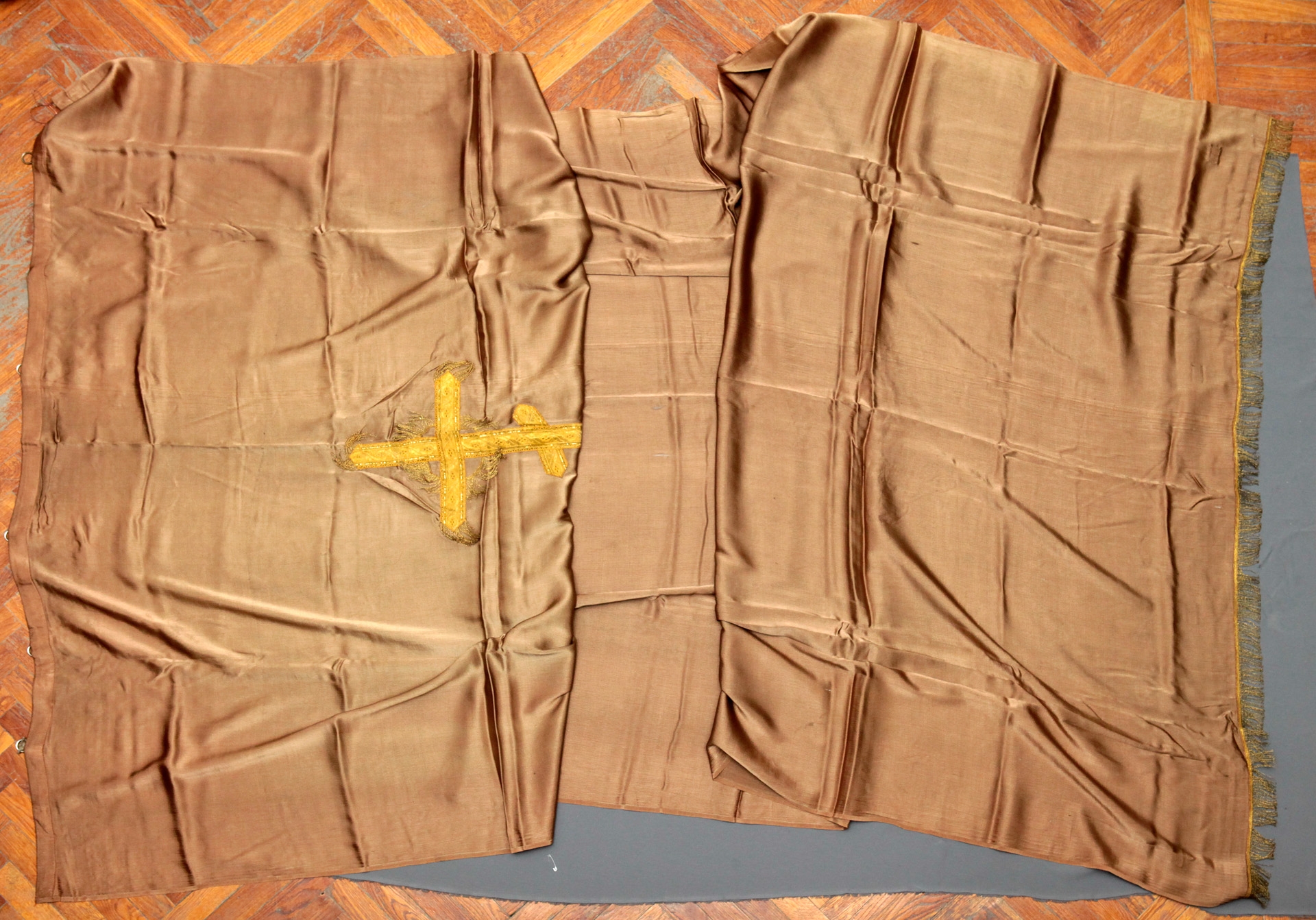 Piesă dreptunghiulară, sus are urechiuşe pentru atîrnare; jos, la capete - franjuri. Pe centru e aplicată o cruce cu 6 braţe. Cromatica: cafeniu, galben.