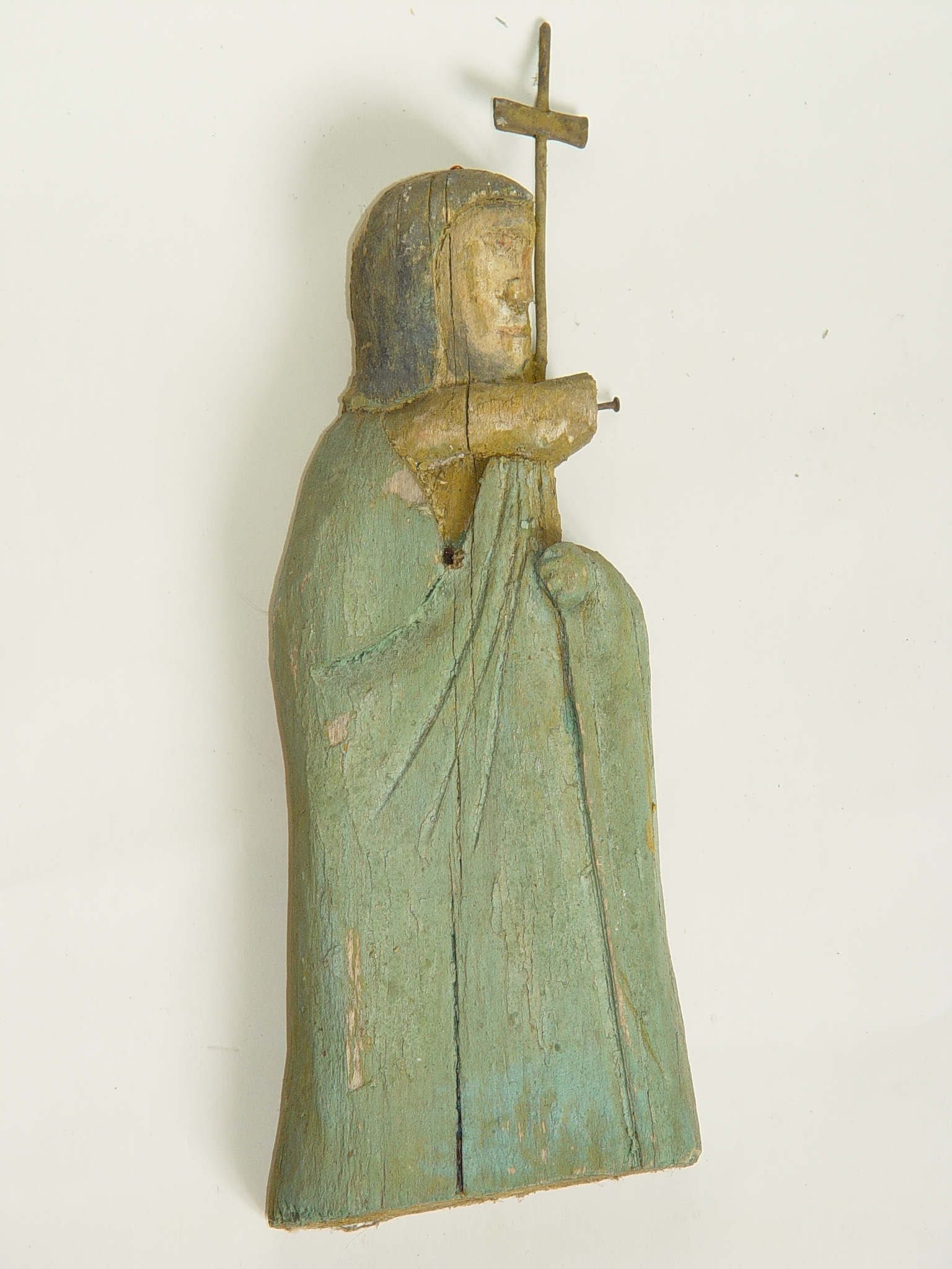 Sculptură în lemn, pictată. Ioan Botezătorul, în plină statură, profil spre drp. Poartă veşmînt verde. Ţine în mînă o cruce de metal. Gama cromatică: galben, brun, verde.