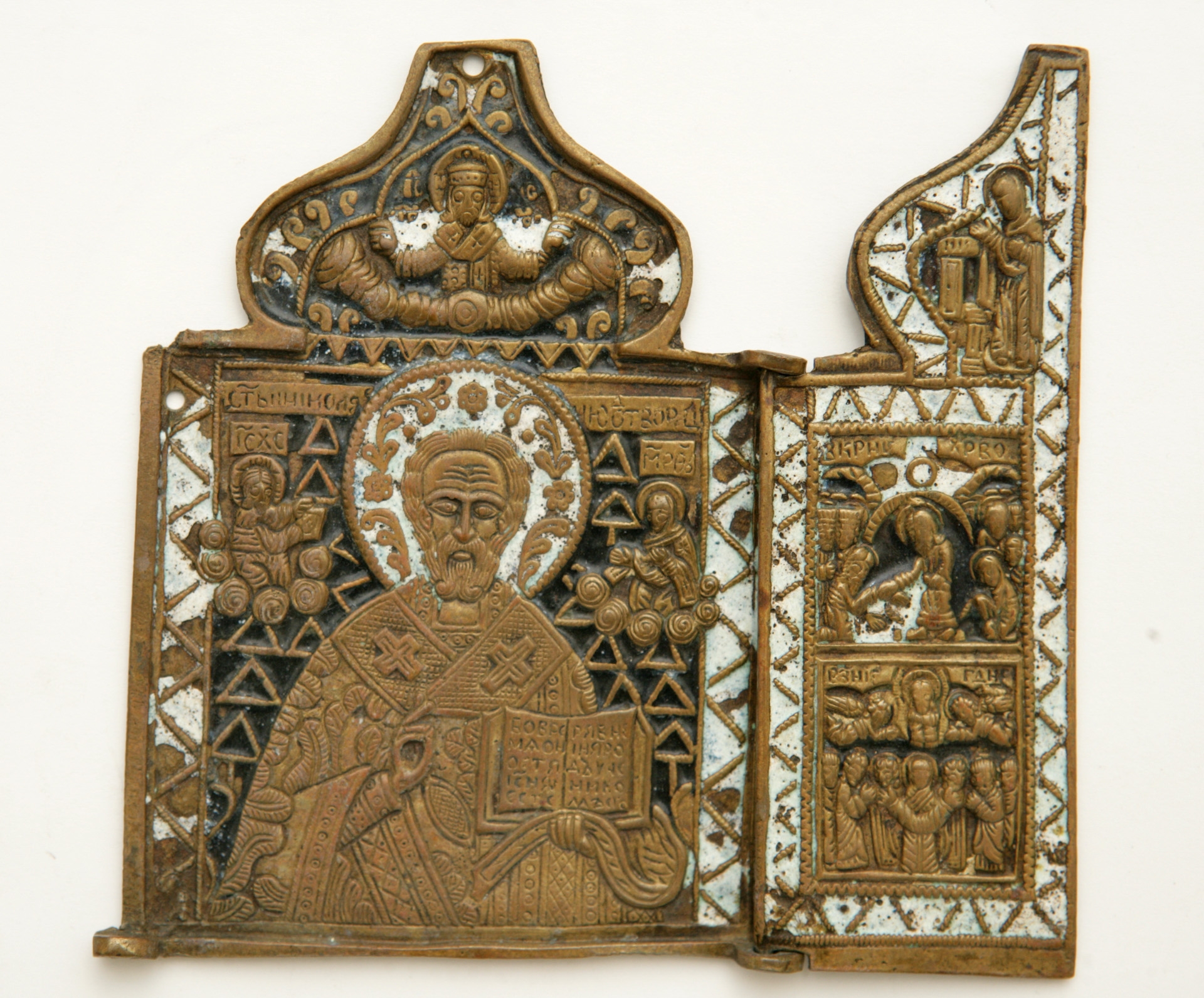 Fragment de icoană-pliant cu 3 canaturi "Sf. Nicolae - făcător de minuni"
