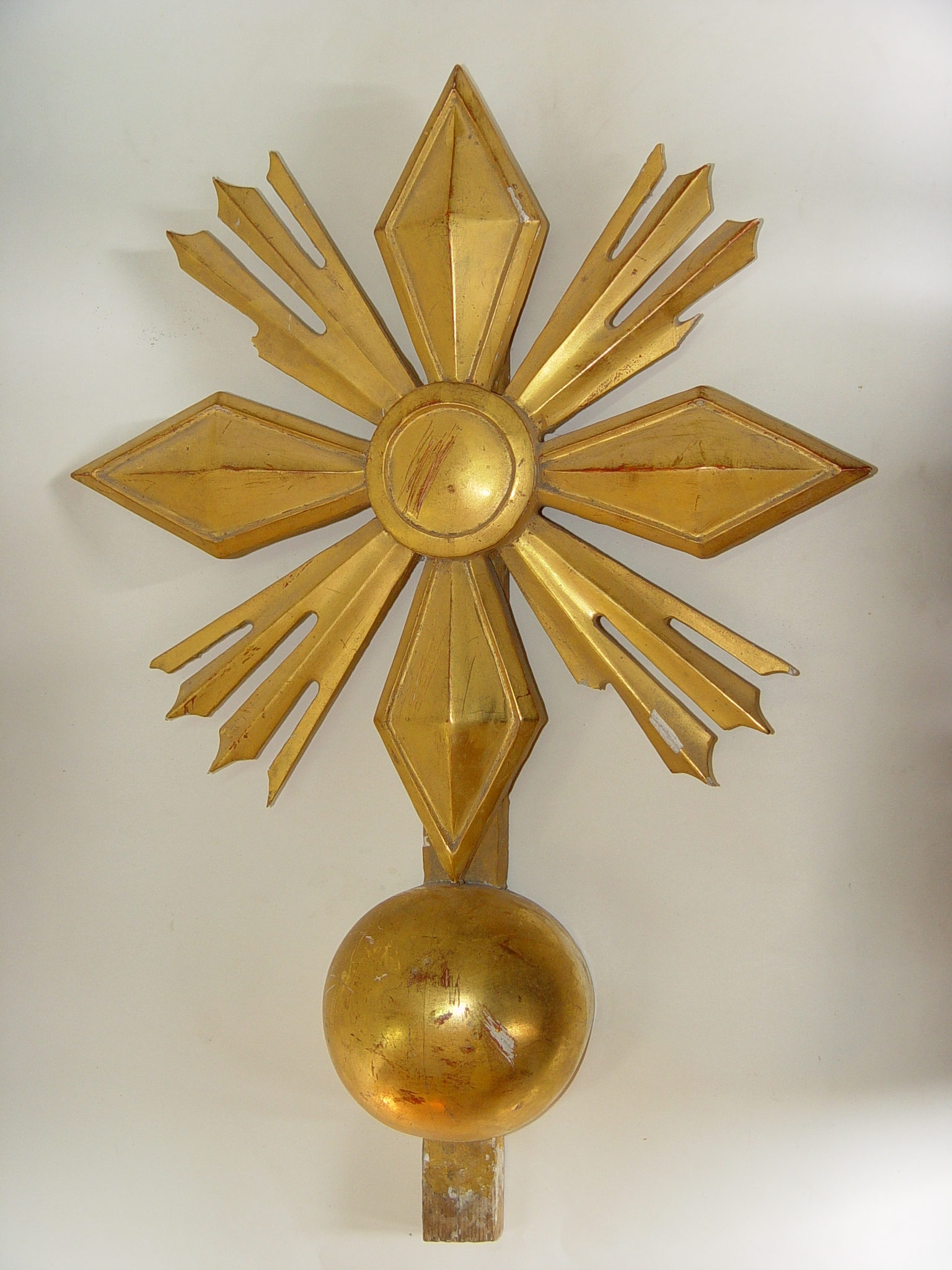 Fragmentul în formă de stea cruciformă cu raze în cele 4 spaţii dintre braţe şi jos cu o sferă. Compoziţia montată pe o traversă verticală, traversa fiind îngropată în sferă.