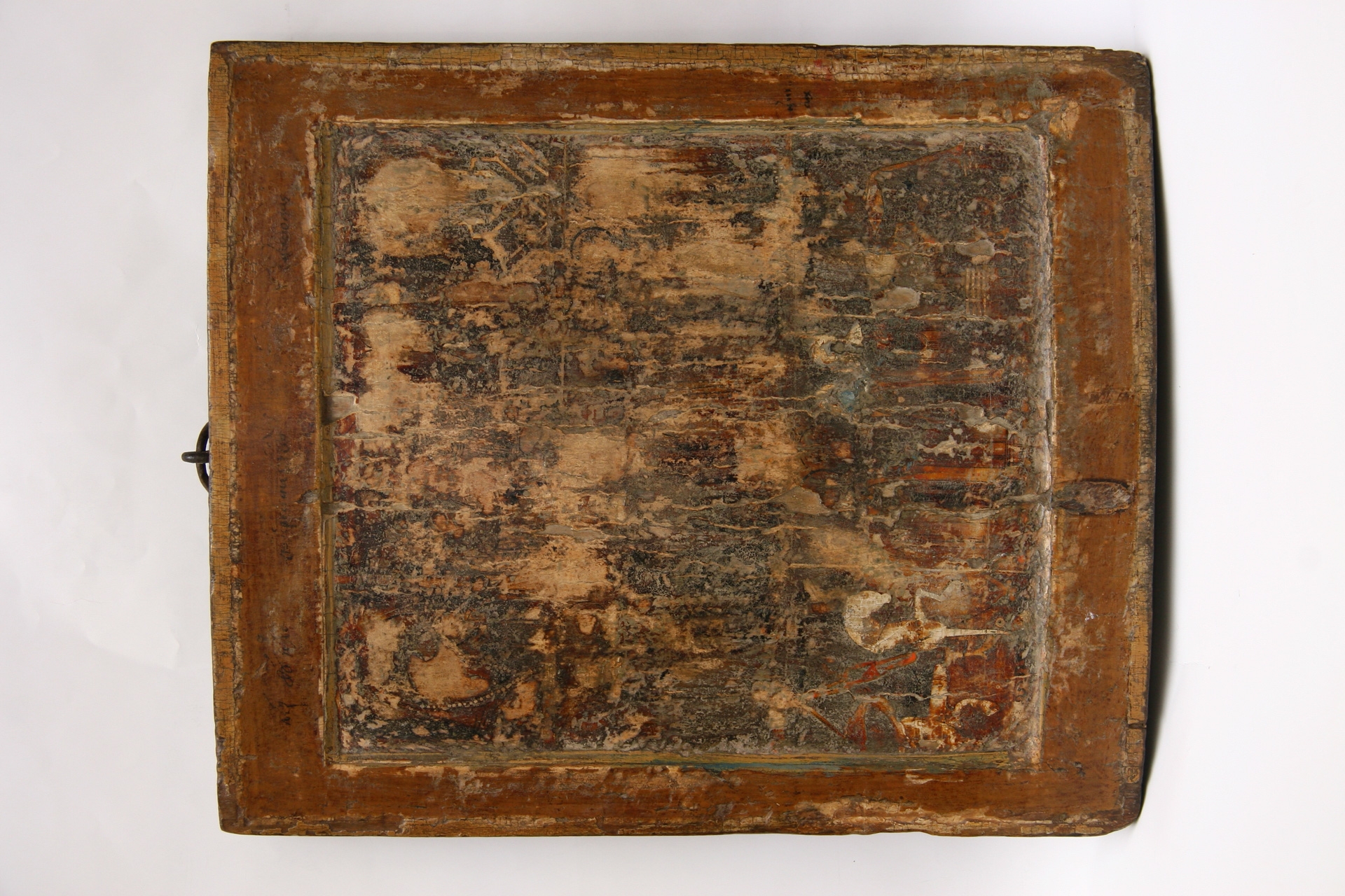 Icoana cu 4 medalioane în colțuri și cu o scenă pe centru pierdută în totalitate. În colțul drept, sus, abia se citește chipul lui Sf. Nicolae iar în colțul stâng, jos, chipul lui Sf. Gheorghe.