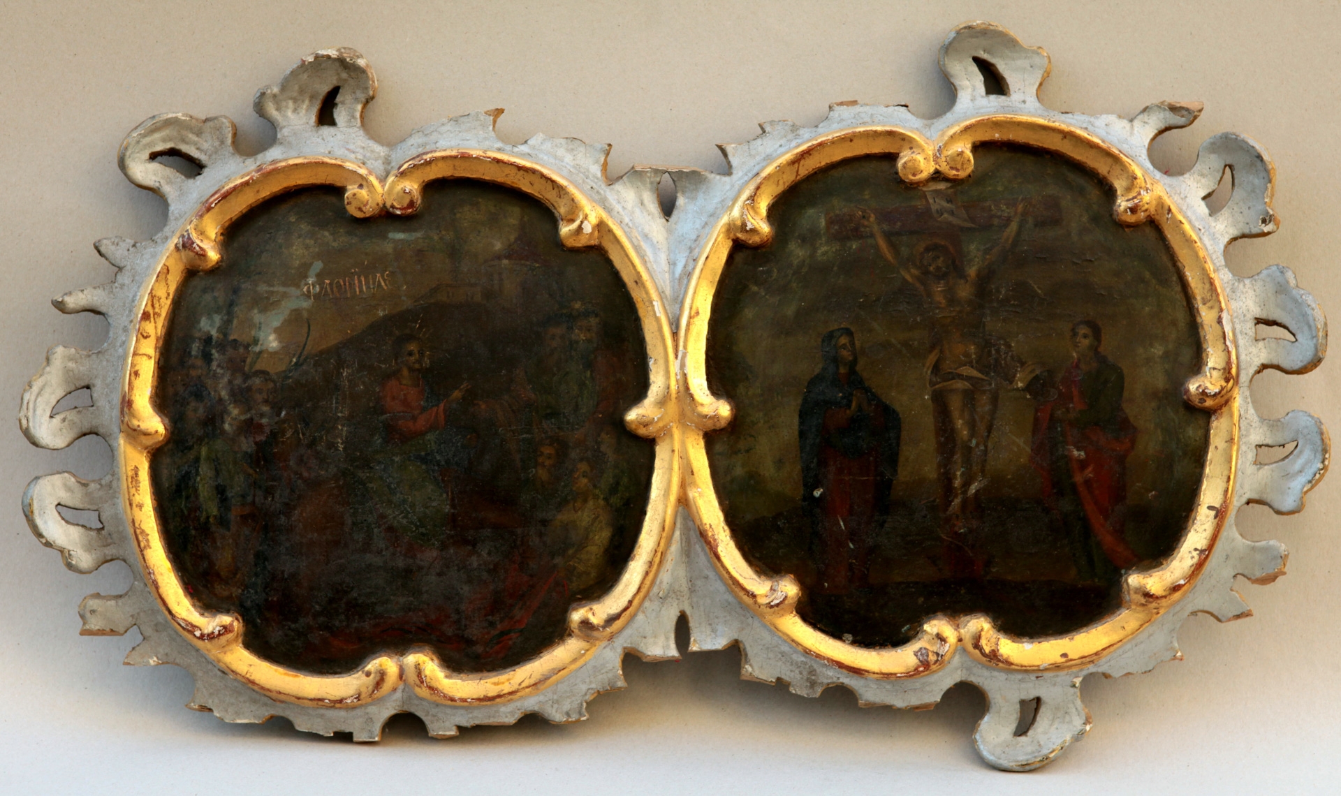 Icoană-diptic: Intrarea în Ierusalim şi Răstignirea Domnului