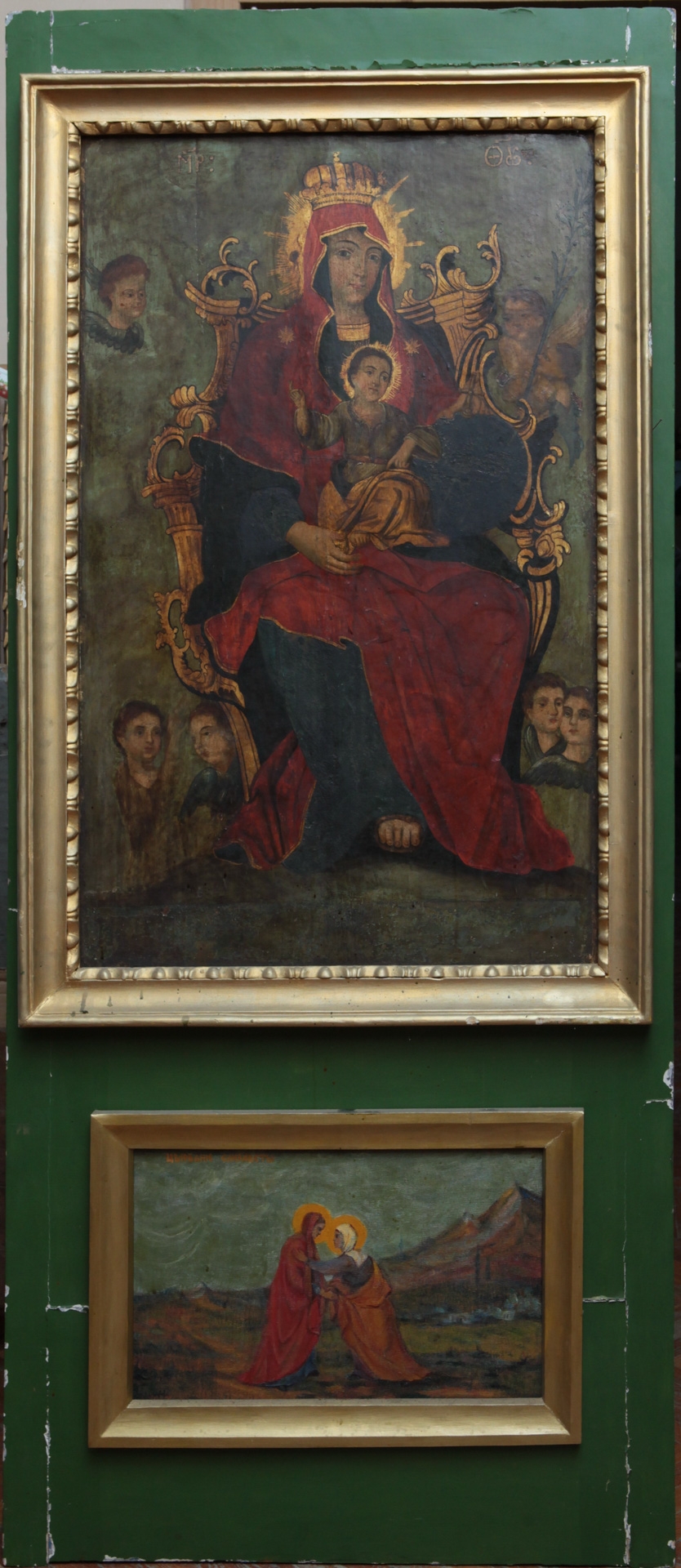 Panou de iconostas "Maica Domnului cu Pruncul tronînd şi Întîlnirea Mariei cu Elisabeta"