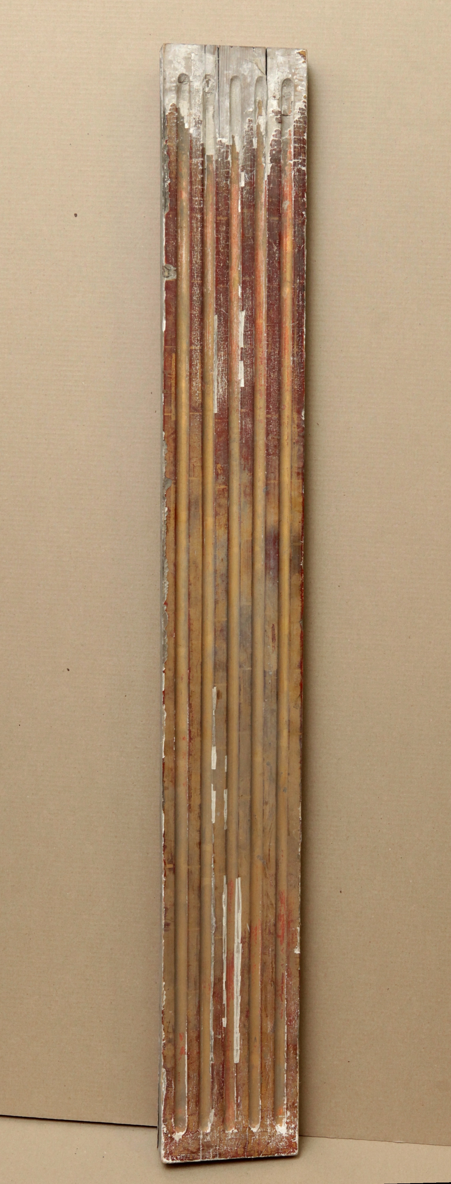 dreptunghiular, decorat cu 5 caneluri longitudinale.