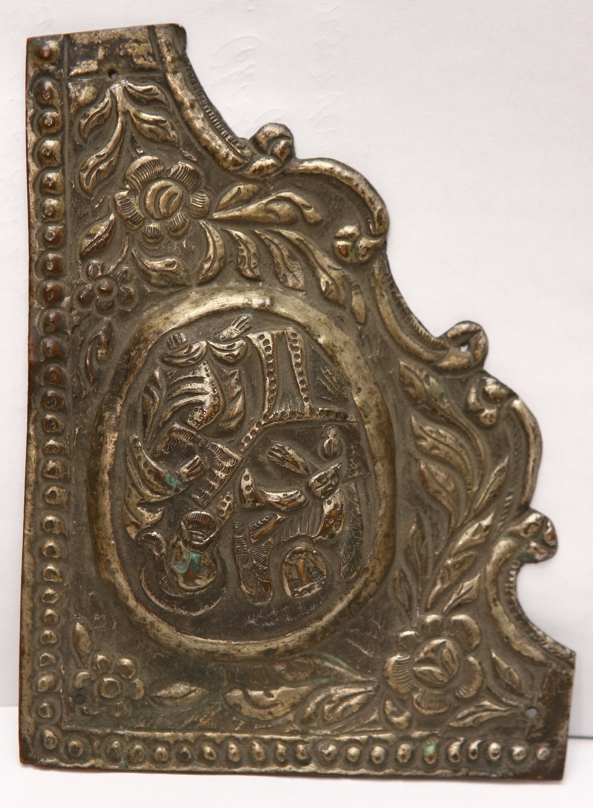 Plachetă din metal reliefat cu decor floral. În centru (Tondo) e redat chipul Evanghelistului Ioan şi vulturul.