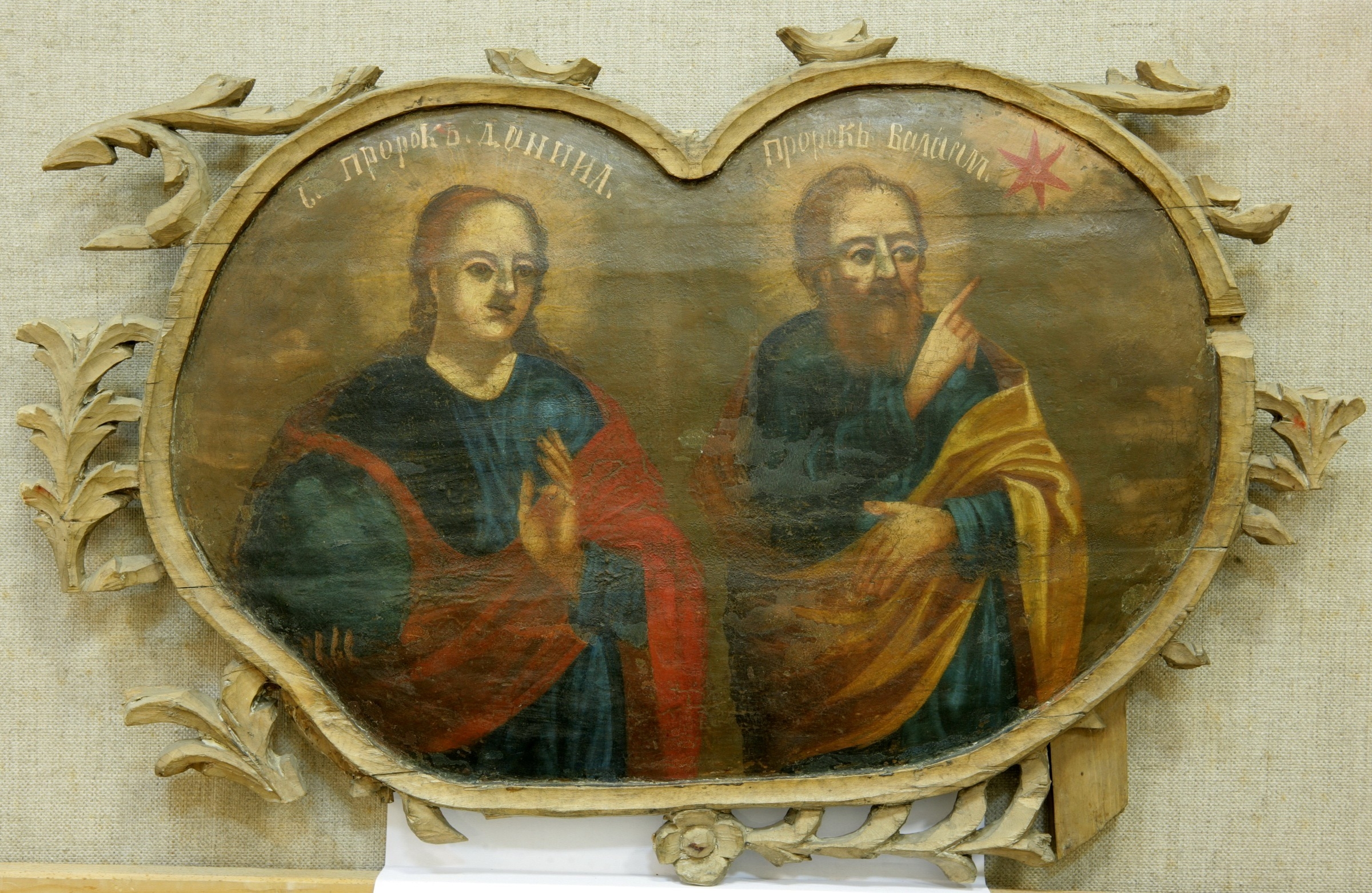 Proorocii Daniel şi Valaam redaţi pînă la brîu. Pr. Daniel poartă chiton albastru şi mantie roşie. Ţine într-o mînă Sfera. Alături: Pr. Valaam în chip de bătrîn. Are chiton albastru şi mantie ocru. Cu degetul indică spre o stea roşie. Fondal neutru. Ramă ovală cu ornament vegetal sculptat.
