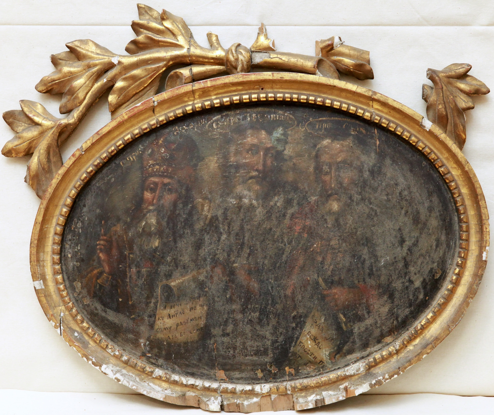 Icoană ovală cu ramă şi ornament sculptat auriu. Sunt redaţi bust 3 profeţi în veşminte de epocă. Sf. Profet Zaharia are mitră pe cap. 2 proroci ţin în mînă cîte un sul cu inscripţii. Gama: albastru, verde, roşu, ocru.