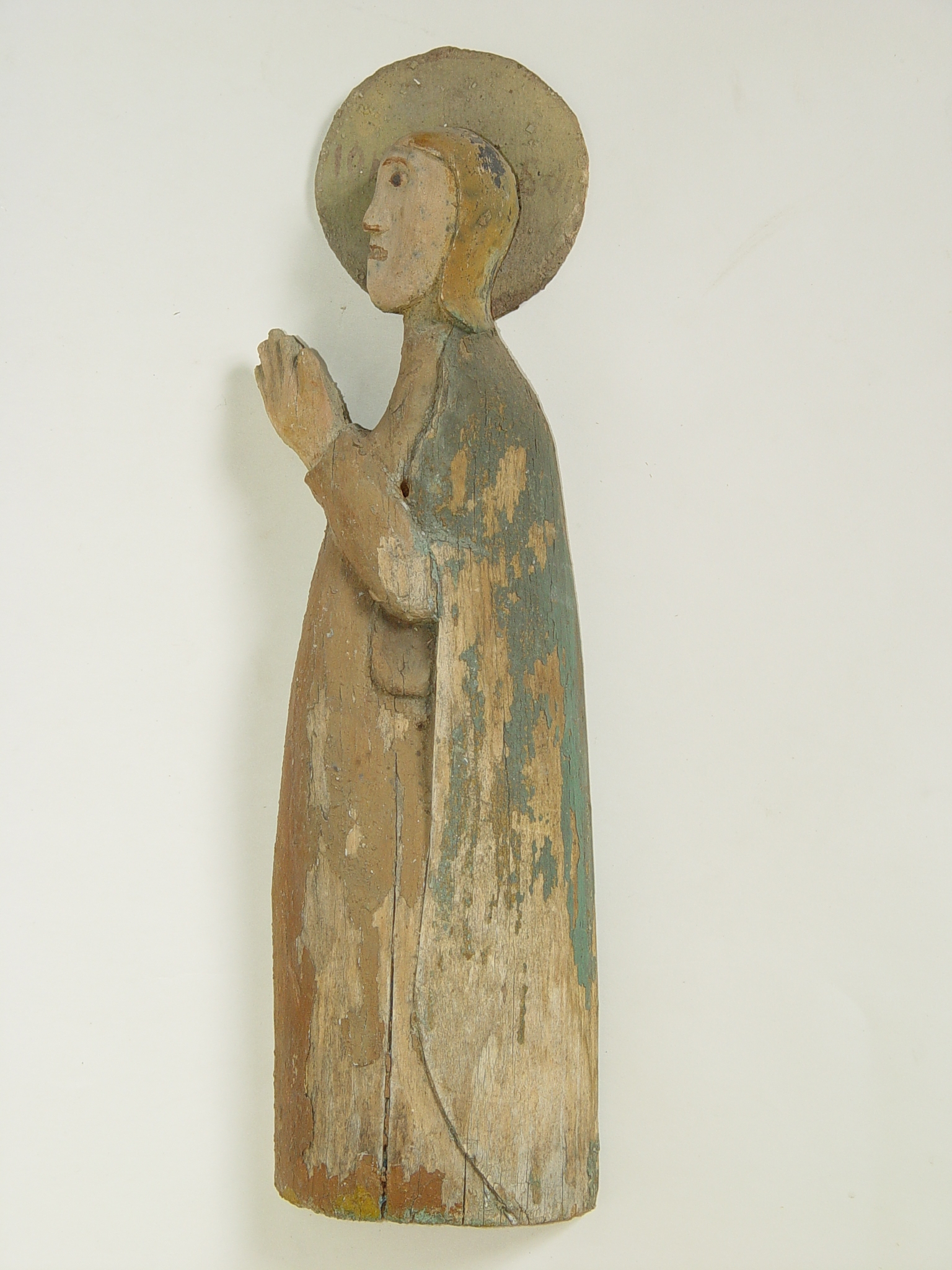 Sculptură în lemn, pictată. În profil spre stg: Sf. Ioan Botezătorul în plină statură. Ţine mînile împreunate în rugăciune. Gama cromatică: albastru-vierzui, bej, roşu. Nimbul din carton, pe nimb - inscripţii.