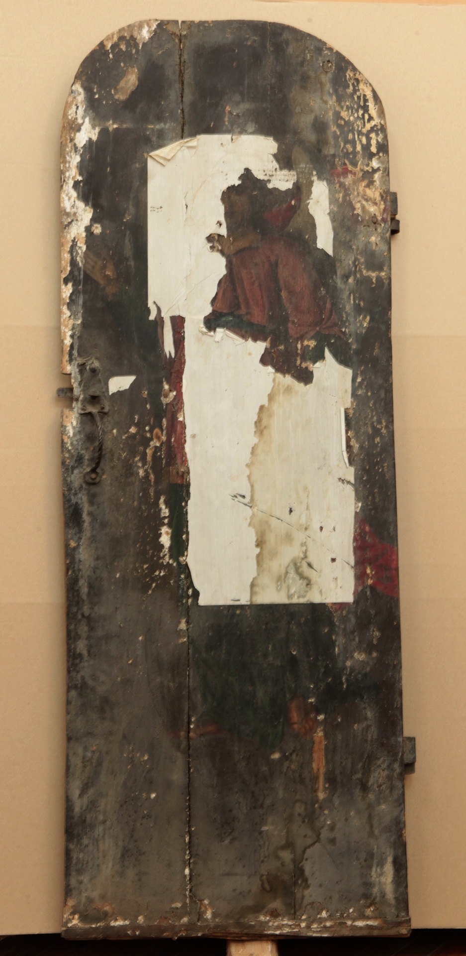Uşă diaconească din partea drp a iconostasului cu imaginea Arh. Gabriel în plină statură, frontal, în haine de ostaş roman.