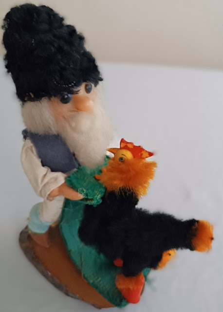 Păpușă-suvenir în stil tradițional moldovenesc ,, Moșneagul cu cocoșul”. Este moșneagul din povestea lui Ion Creangă ,,Punguța cu doi bani” El poartă costum tradițional