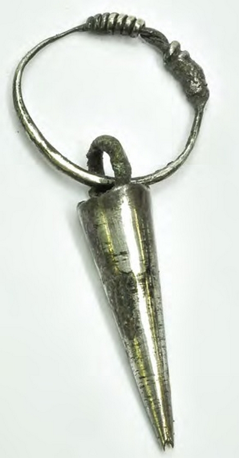 Pandantivul constau dintr-o „căldăruşă” conică cu tortiţă de bronz, prinsă de un inel de sârmă cu capetele înfăşurate.