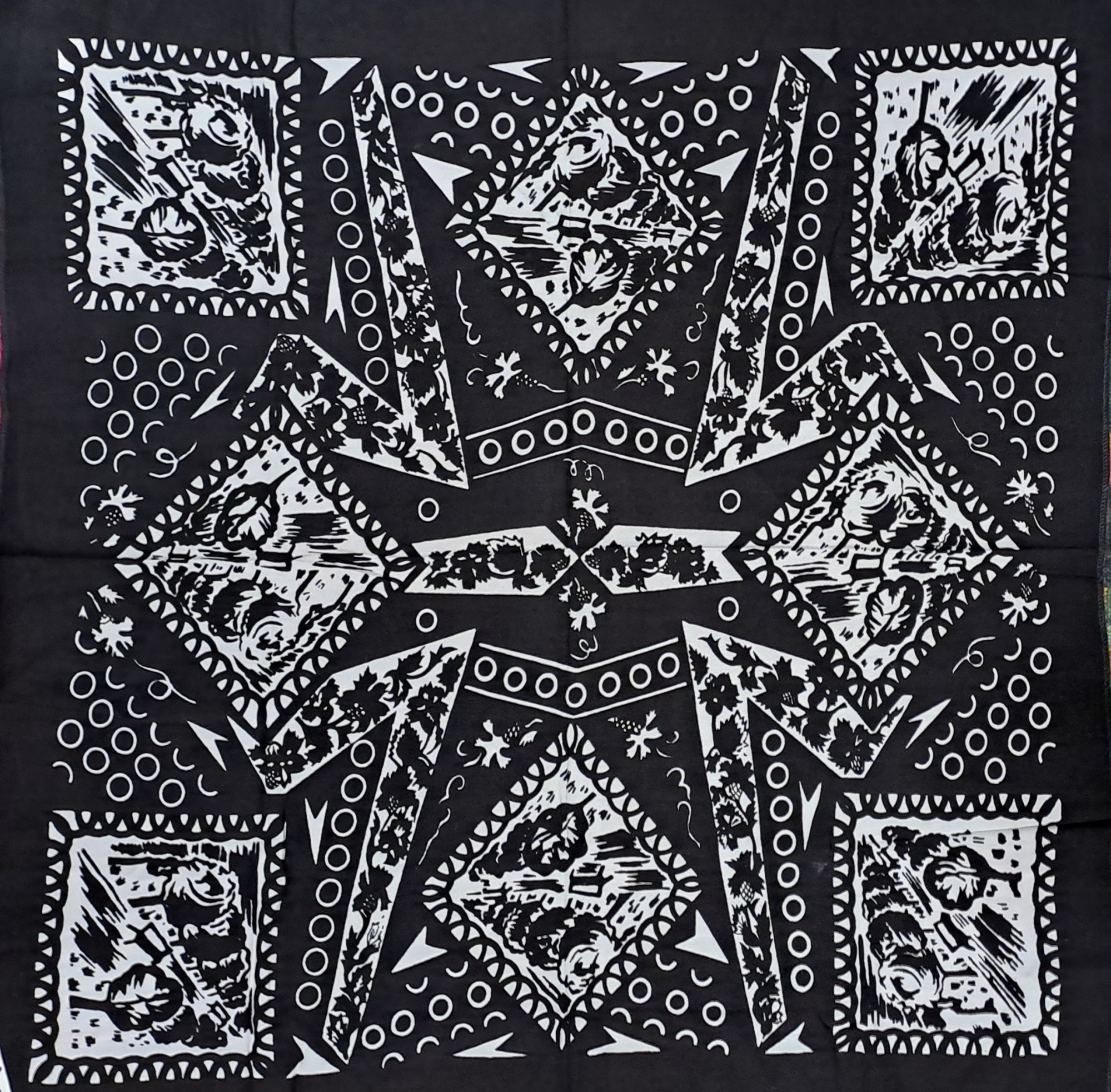 Basma tradițională de formă patrată, țesută din fir de bumbac. Câmp negru cu decor abstract policrom imprimat , compus din ornamente florale, vegetale, geometrizante, dispuse pe toată suprafața. Piesă purtată de femei ca acoperitori de cap, sau ca accesoriu vestimentar.