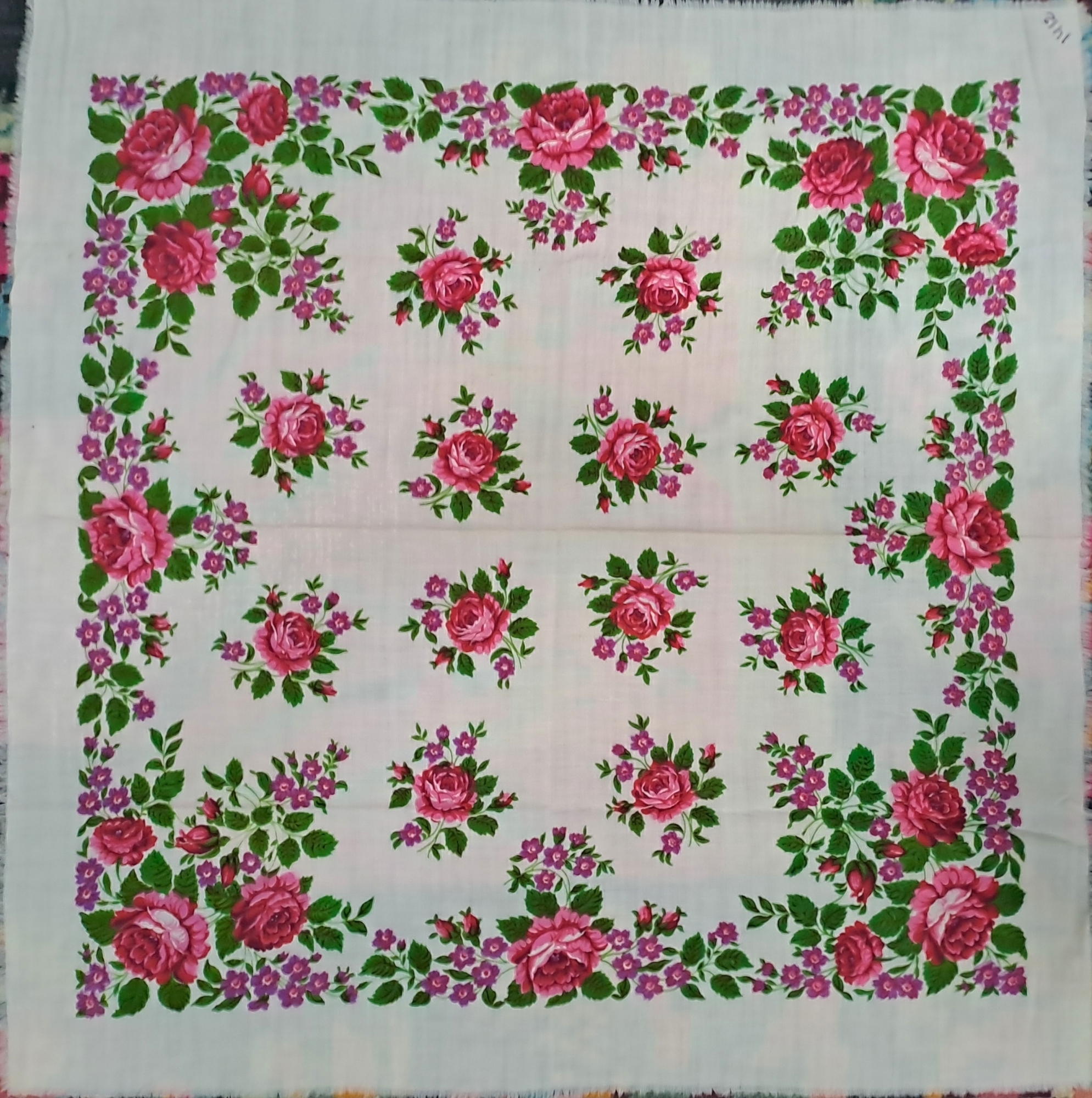 Basma tradițională de formă patrată, țesută din fir de lână. Câmp alb cu decor floral policrom imprimat , compus din ornamente florale, dispuse pe toată suprafața, pe margini franjuri scurte. Piesă purtată de femei ca acoperitori de cap, sau ca accesoriu vestimentar.