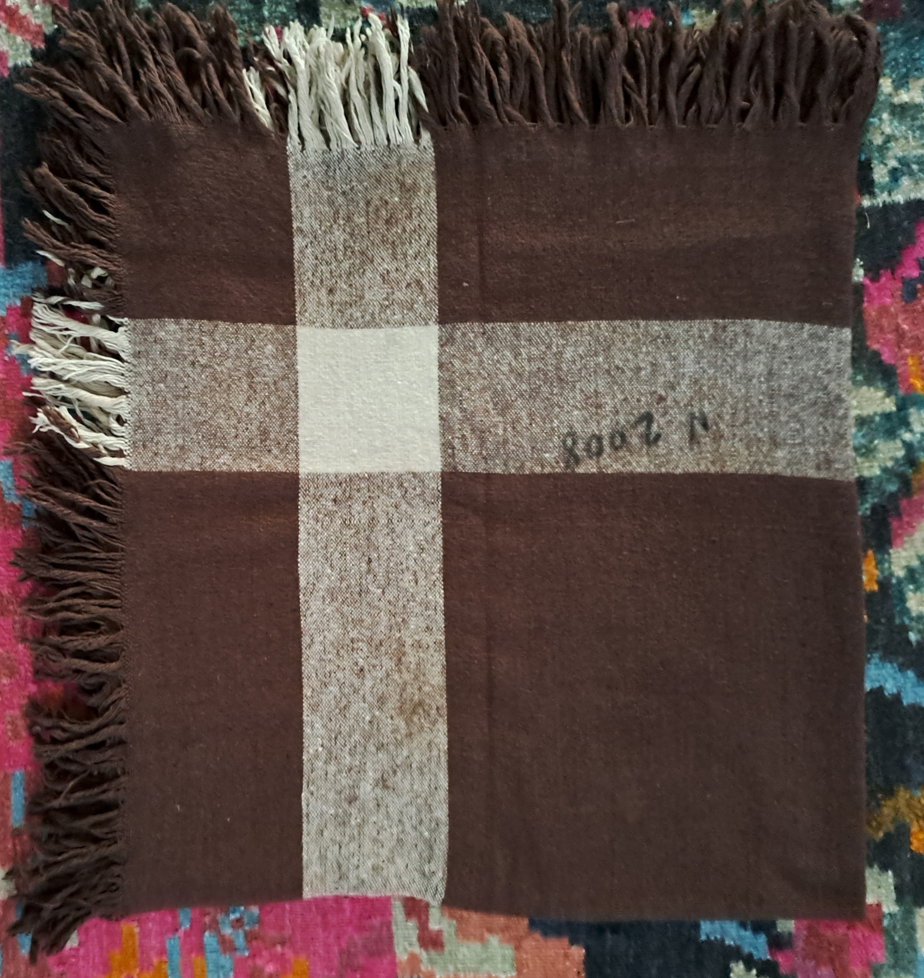Basma tradițională de formă patrată, țesută din fir de lână . Câmp cafeniu, pe margini o vârstă de culoare albă. Pe margini imprejur franjuri scurte. Piesă purtată de femei ca acoperitori de cap.