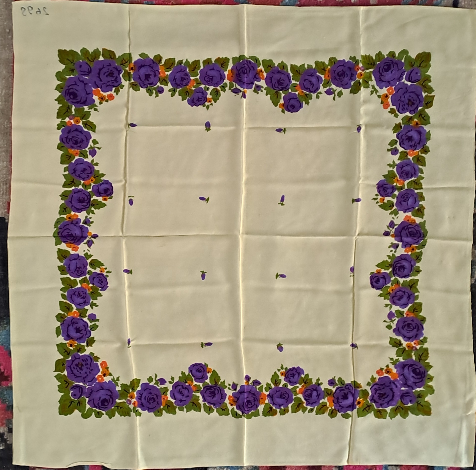Basma tradițională de formă patrată, țesută din fir sintetic. Câmp galben cu decor floral policrom imprimat , compus din ornamente florale. Piesă purtată de femei ca acoperitori de cap, sau ca accesoriu vestimentar.
