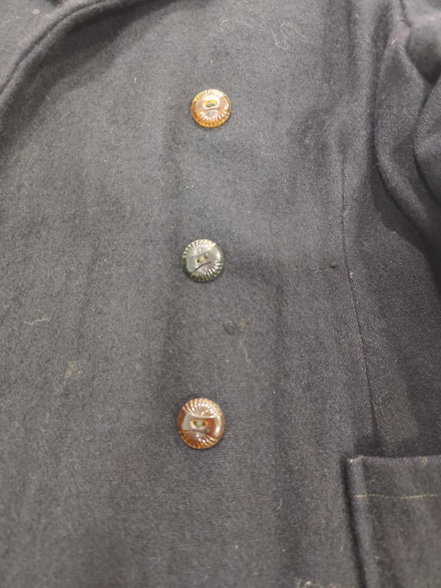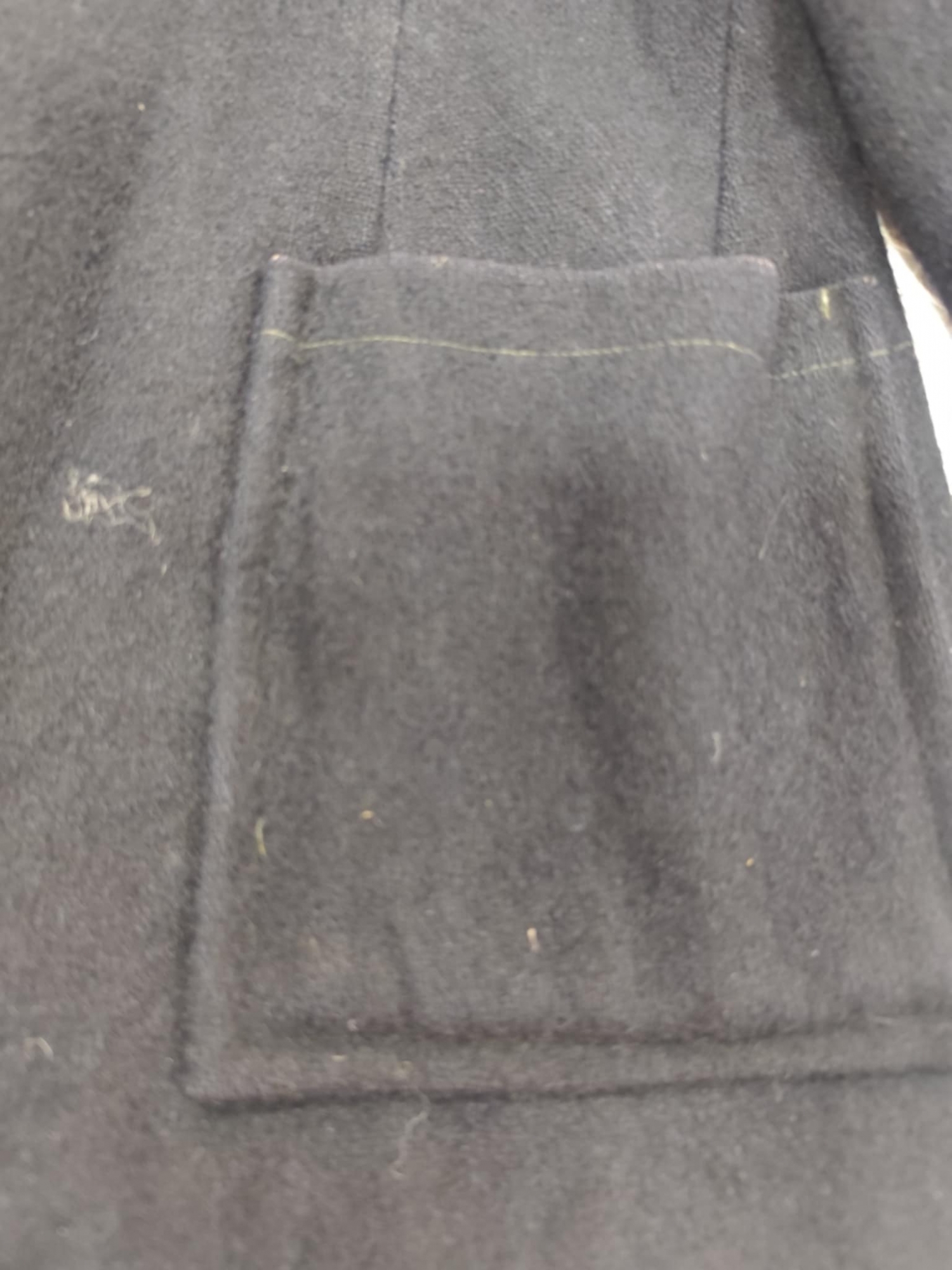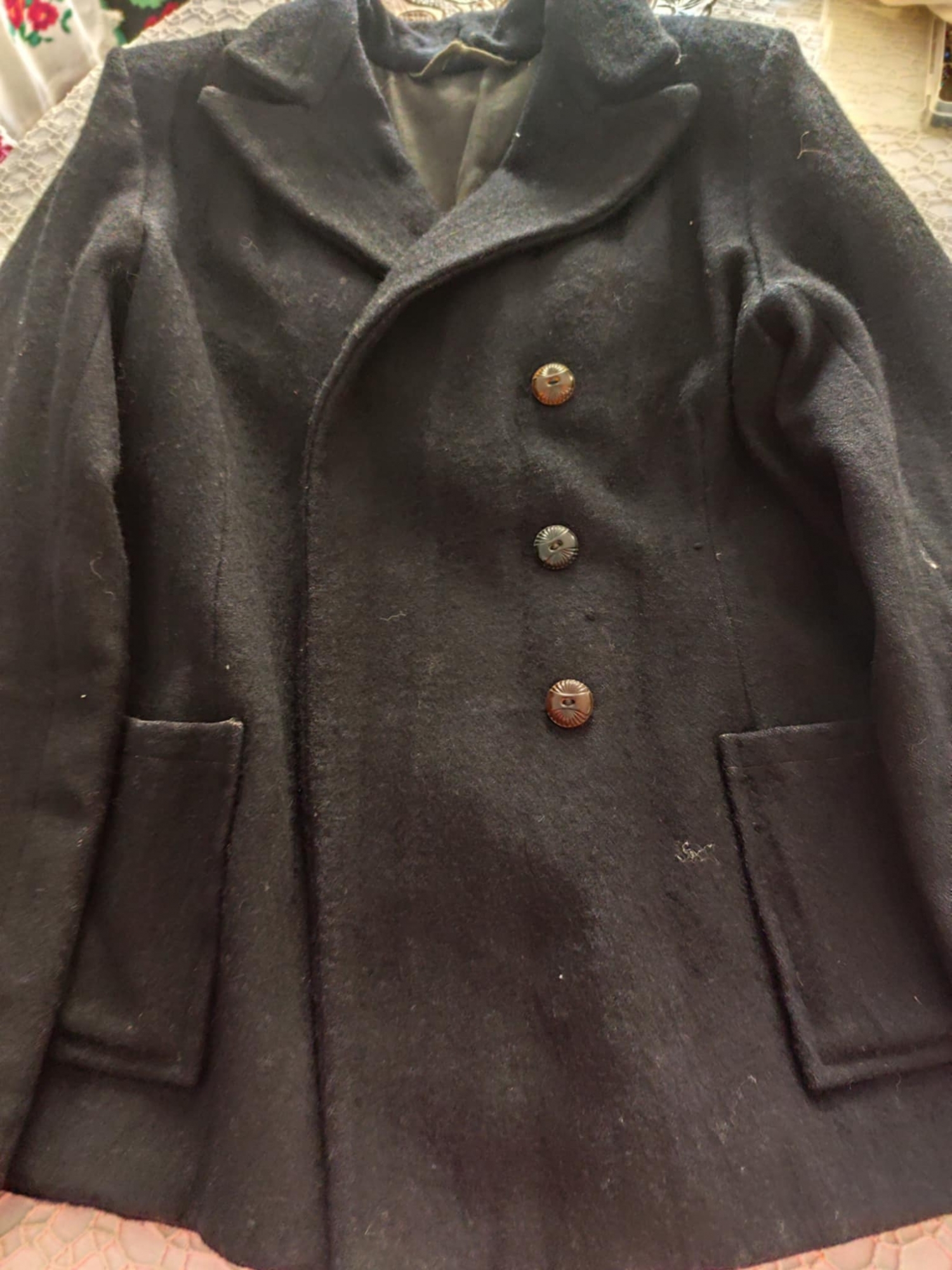 Sacou din lână de culoare neagră are un stil clasic, ce revere late și cu căptușeală înăuntru Acesta se închide cu trei nasturi mari și rotunzi din metal. Sacoul are două buzunare pătrate , situate în partea de jos, cîte unul pe fiecare parte