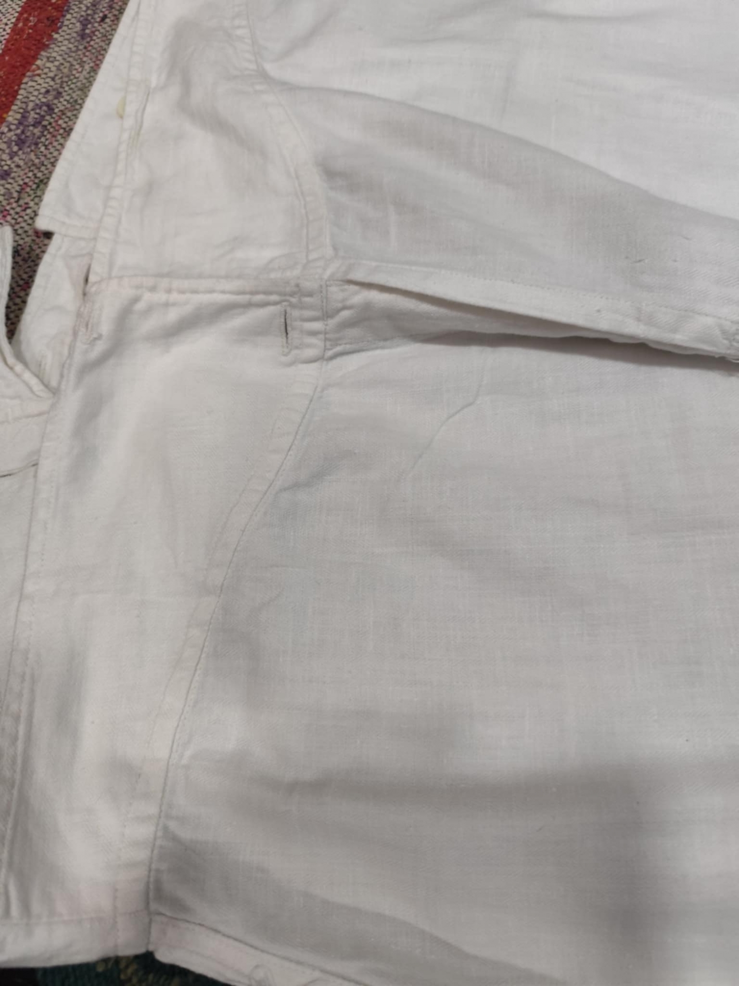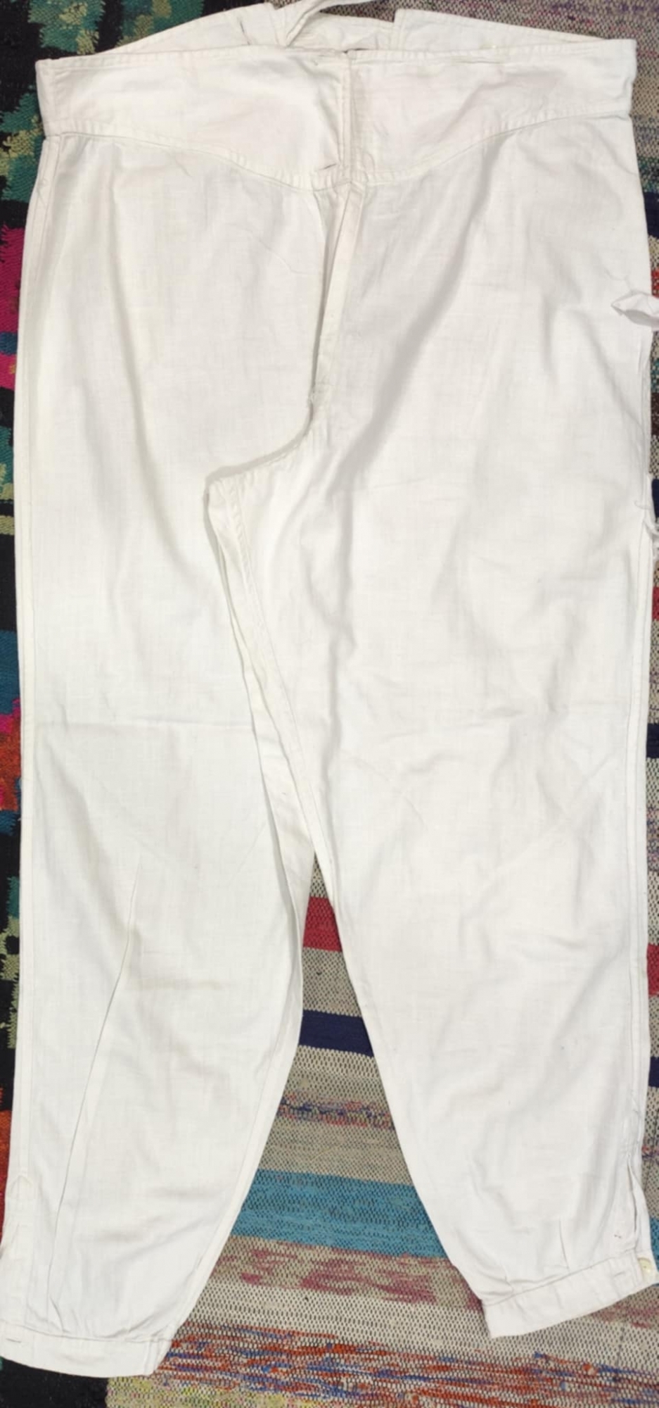 Pantalonii bărbătești de culoare albă erau purtați atît pentru sărbătoare, cît și la lucru, fiind parte a a costumului popular. Aceștia au o croială lejeră , cu talia înaltă . Cracii sunt largi și se strîng ușor la glezne cu ajutorul nasturilor, pentru a se menține în cizme.