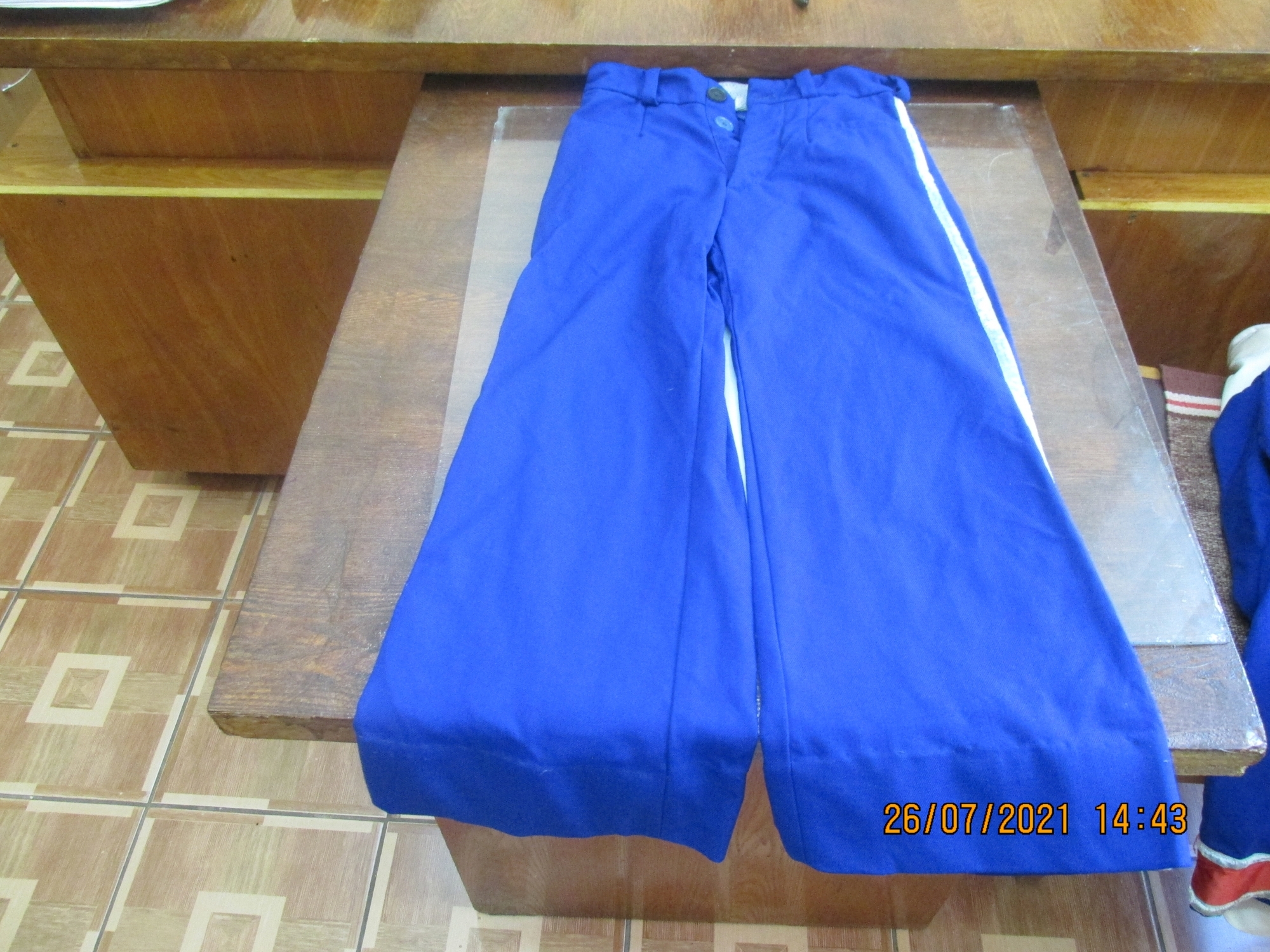 Pantaloni-port popular pentru copii este de culoare albastră,fabricat la mașină,stofa de lână