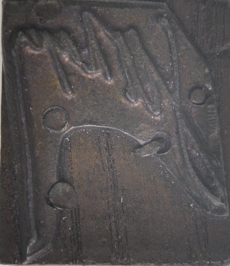 Matrice sigilară de formă dreptunghiulară, mâner dreptunghiular. Pe o placă dreptunghiulară de metal, prinsă cu două cuie de baza de lemn, s-a gravat monograma cu semnătura facsimil a profesorului Rașcu G.