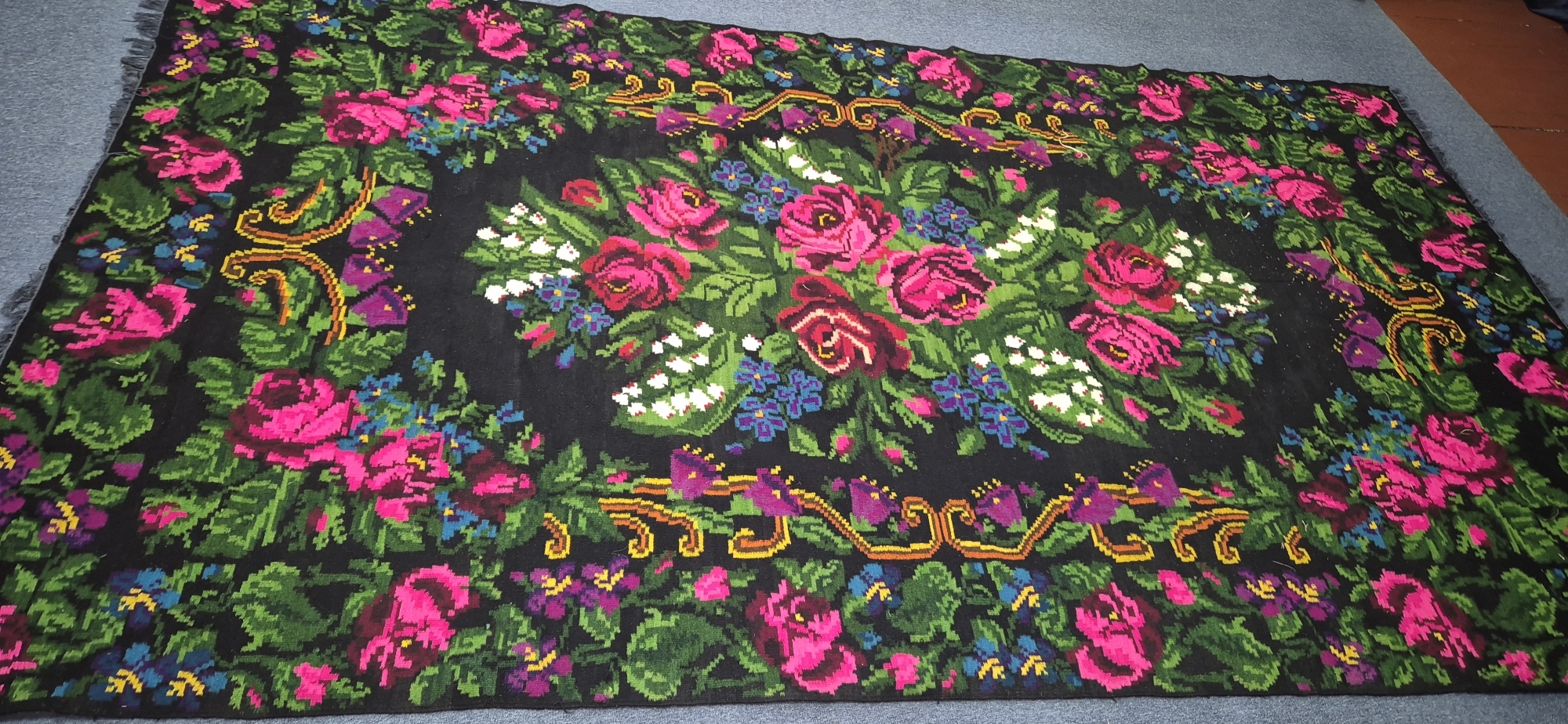 Covorul tradițional moldovenesc este o piesă de artă populară din lână, țesută manual, caracterizată prin motive florales.a. Acest covor are un chenar decorativ, iar compoziția centrală prezintă buchete de flori.