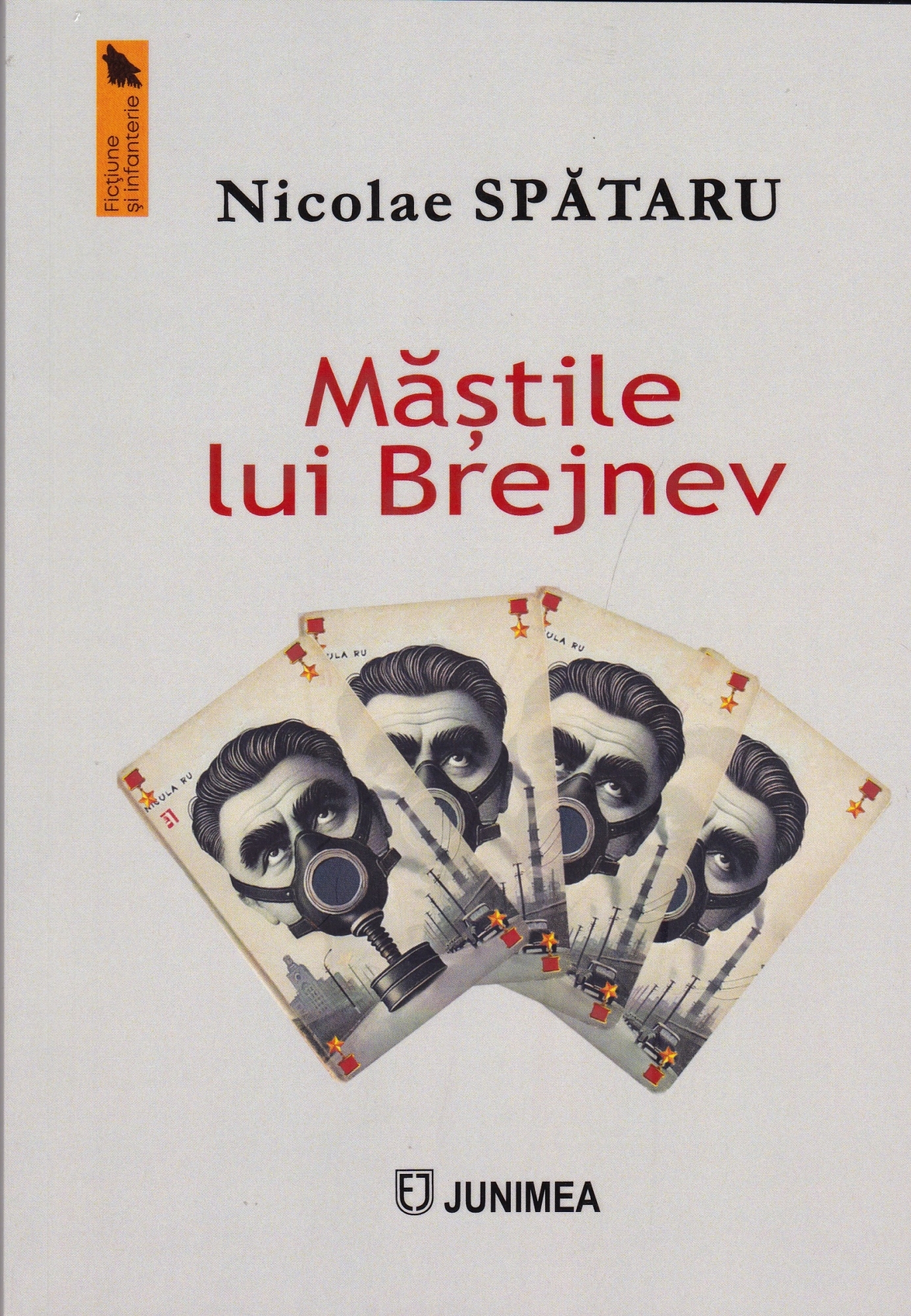 Măștile lui Brejnev de Nicolae Spătaru este o lucrare de proză ce îmbină elemente de ficțiune și reflecție istorică, explorând teme legate de identitate, putere și memoria colectivă. Titlul face referire la Leonid Brejnev, lider sovietic, și sugerează ideea de „măști” – simboluri ale ipocriziei, propagandei și multiplelor fețe ale realității politice din perioada comunistă. Cartea folosește un ton satiric și ironic pentru a analiza modul în care oamenii se adaptează sau se ascund în spatele unor roluri impuse de regimuri autoritare. Este o meditație asupra trecutului recent și a felului în care acesta continuă să influențeze prezentul. Coperta cărții prezintă autorul și titlul scris cu negru și roșu pe un fundal gri. În partea de jos, sunt ilustrate mai multe cărți de joc, fiecare având desenat un chip stilizat și o mască care le ține. În colțul stâng sus se află o etichetă portocalie cu mențiunea „Ficțiune și infanterie”, iar jos pe mijloc este menționată editura.