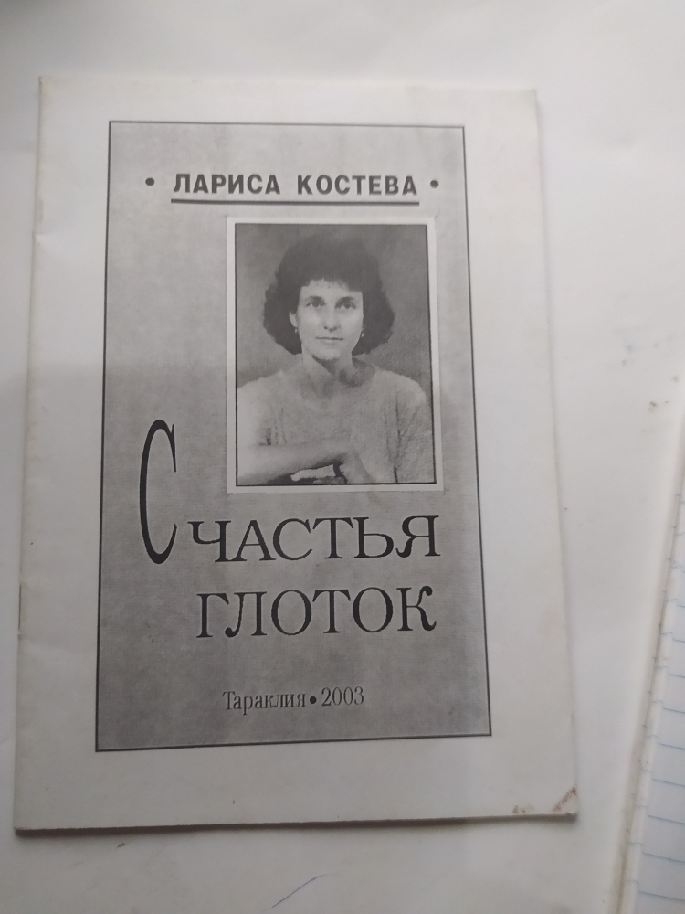 книга "Счастья глоток" автор-Лариса Костова, Тараклия 2003г. Книга - печатное произведение, объединяющее тексты, иллюстрации, представленное в виде связанных листов, предназначенное для чтения.