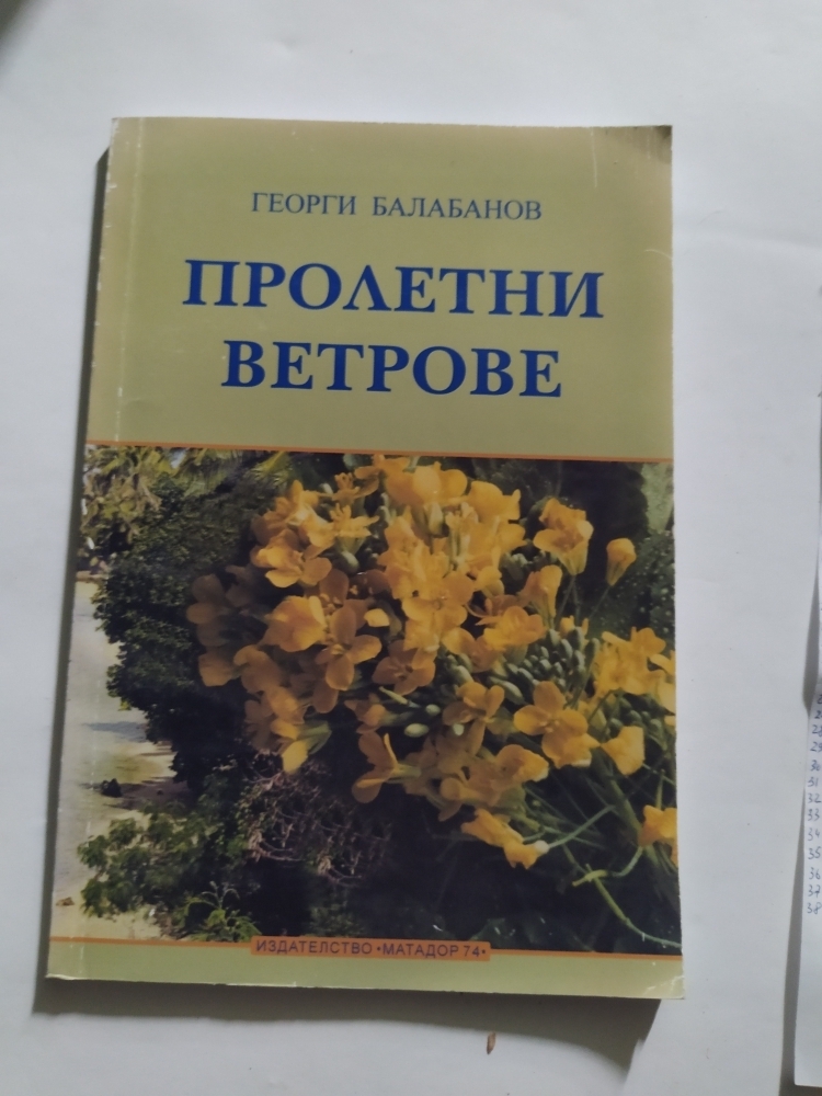 книга "Пролетни ветрове" автор Георги Балабанов,изд-во Матадор 2010. Книга - печатное произведение, объединяющее тексты, иллюстрации, представленное в виде связанных листов, предназначенное для чтения.