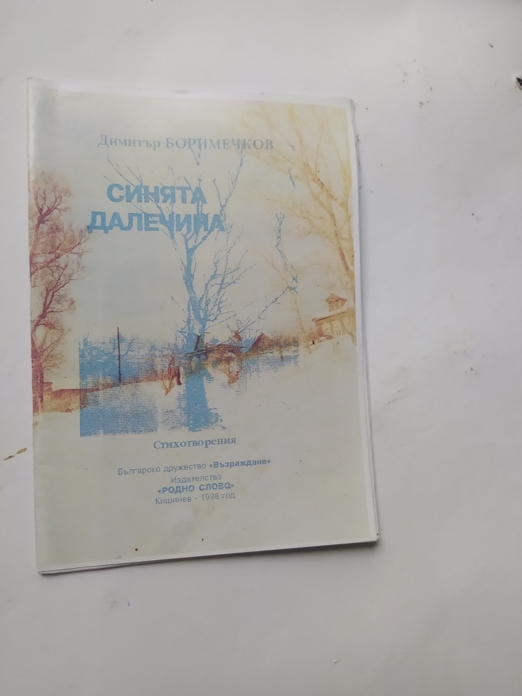 Книга "Синята далечина" Д. Боримечков, 1998 г. Кишинев. Обложка тонкая, глянцевая. Данная книга содержит поэзию на болгарском языке.