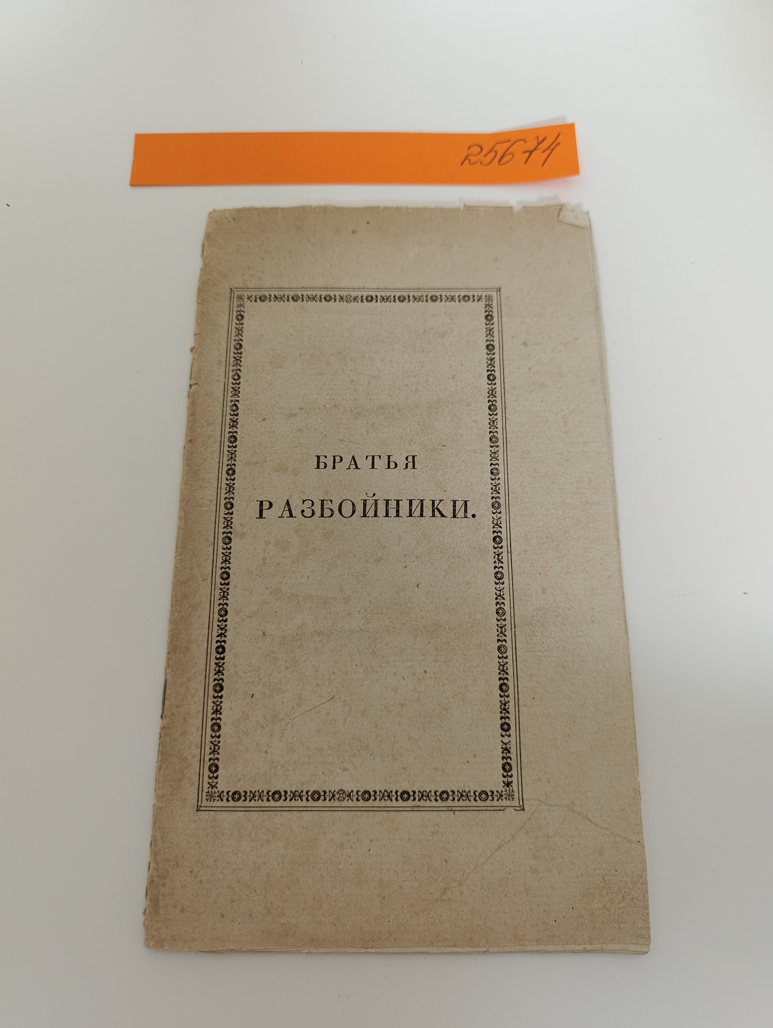 Ediție din timpul vieții lui A.S. Pușkin, scrisă în anul 1822. Întreaga broșură este formată dintr-o coală de hârtie pliată, alcătuită din 16 pagini, prima și ultima servind drept coperți. Pe prima pagină, într-un chenar tipografic, este tipărit: „Brat’ya Razboiniki” („Frații Tâlhari”); pe ultima, în același tip de chenar, apare inscripția: „Prețul 42 copeici” („Preț 42 de copeici”). Aprobarea cenzurii a fost acordată la 9 iunie 1827, cenzor – Ivan Snegirev.