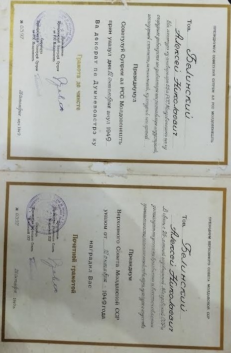 Diplomă de onoare nr. 6397 a lui Bleinski Alexei Nicolae în legătură cu aniversarea a 25-a a Partidului Socilaist Moldovenesc și cu scopurile dobândite în dezvolatre