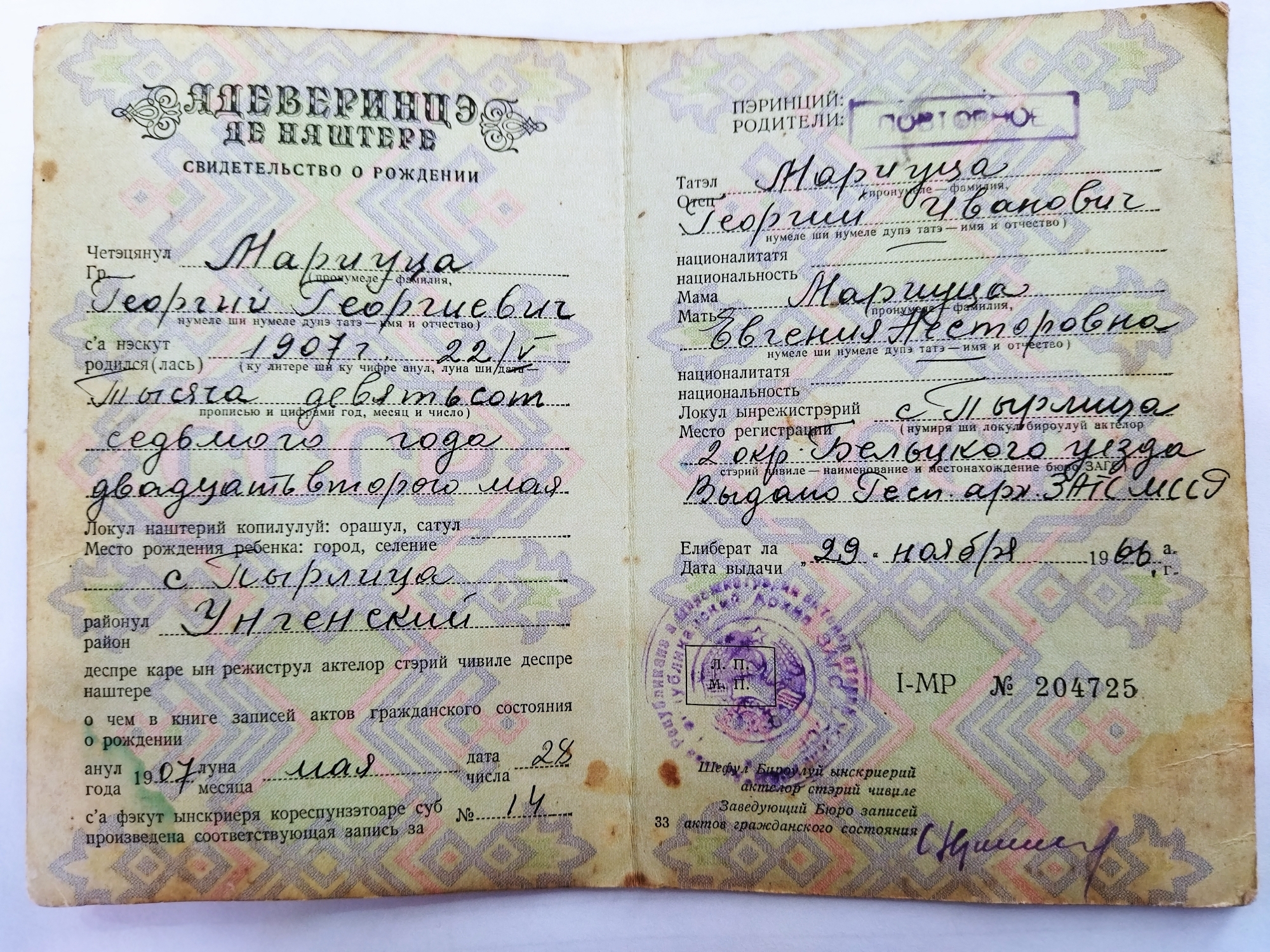 Autor/Meșter | Biroul Stării Civile, RSSM |