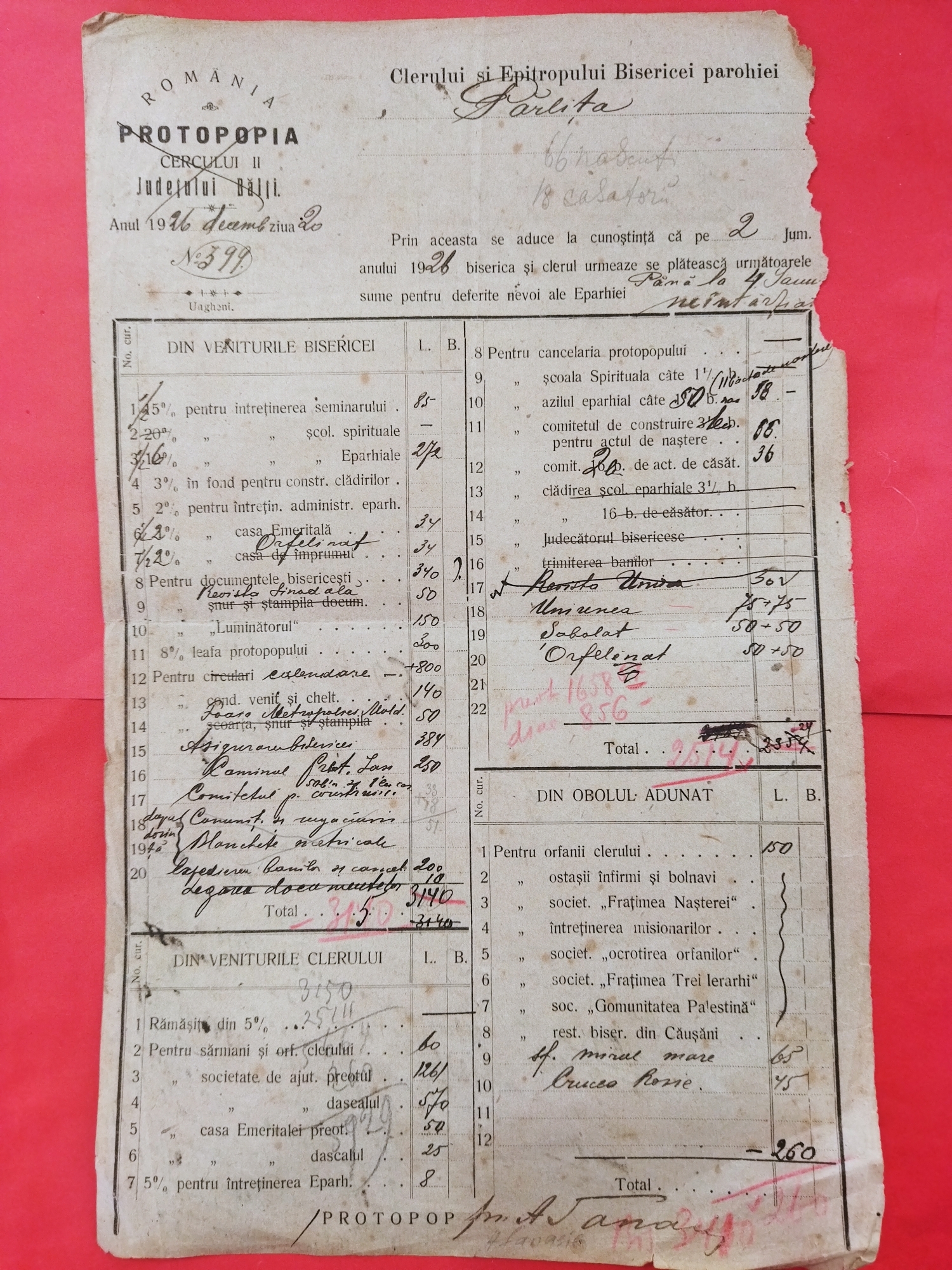 vărsămintele bisericești ale parohiei Pîrlița jud. Iași, sume pentru diferite nevoi ale Eparhiei.