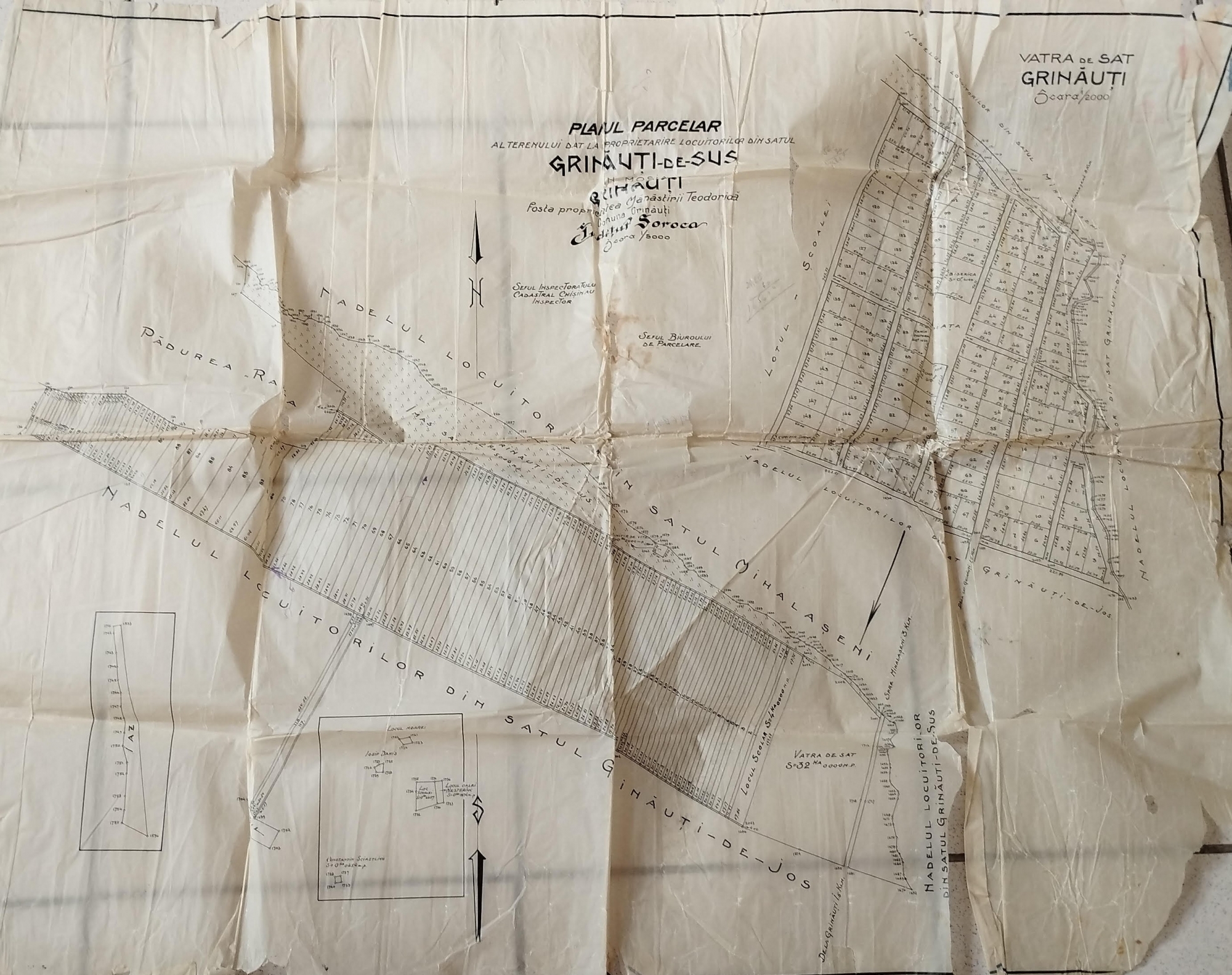 Planul parcelar al terenului dat la proprietarire locuitorilor din satul Grinăuți de Sus fosta proprietatea Mănăstirii Teodoridă.