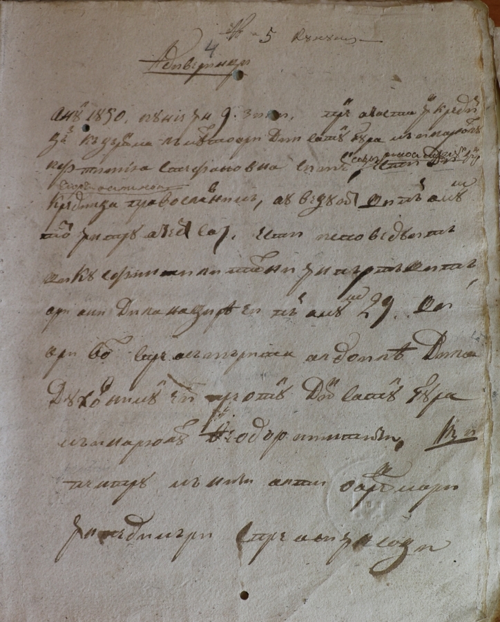 Pagina 1: în partea de sus apare o inscripție olografă în română-chirilică a preotului Vasile Condur: №5 кунуние / №5 cununie. Pagina 2: în colțul drept inferior filigran cu sigle neclare.